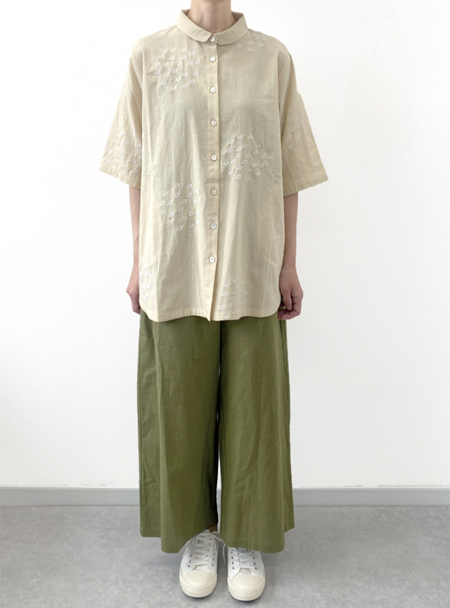30%OFF! 綿起毛袖刺繍入りターンカラープルオーバー