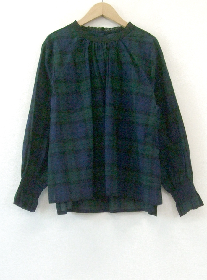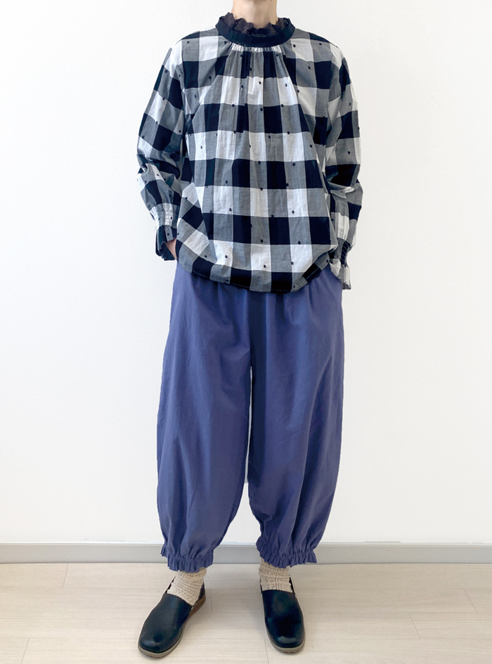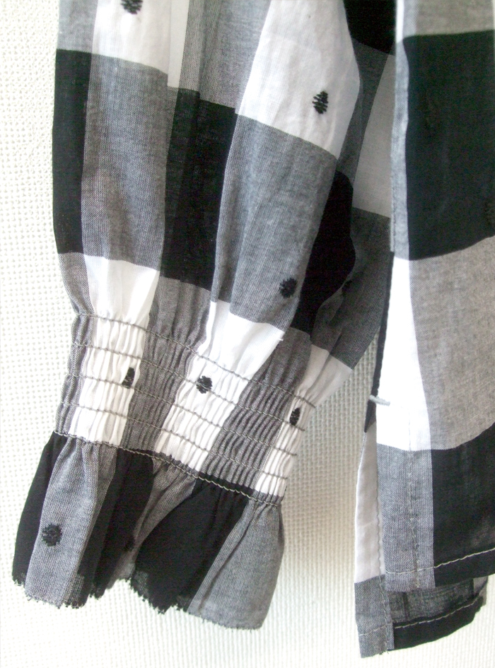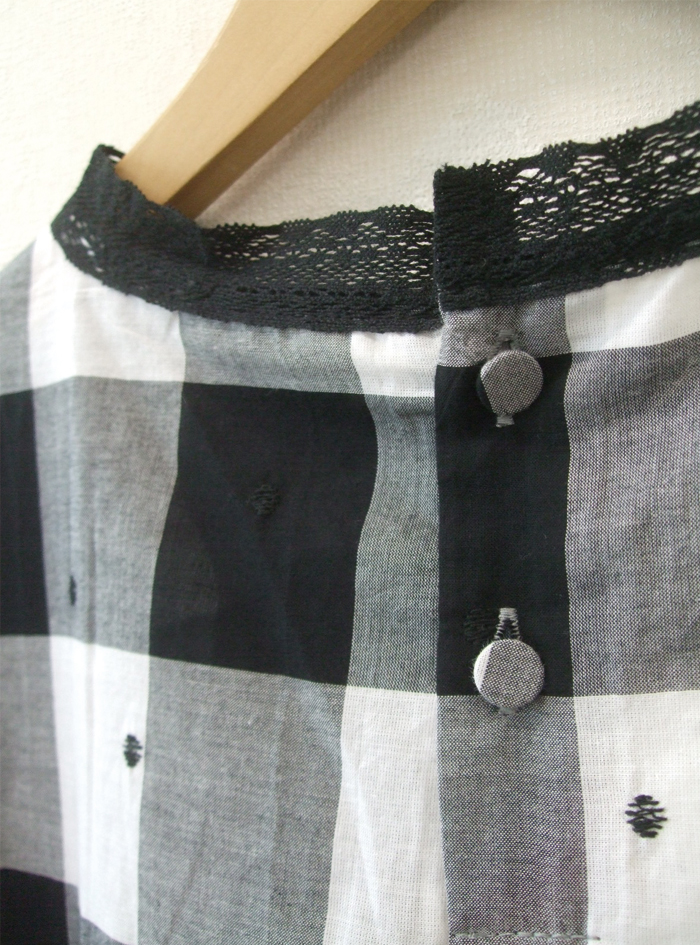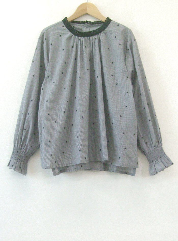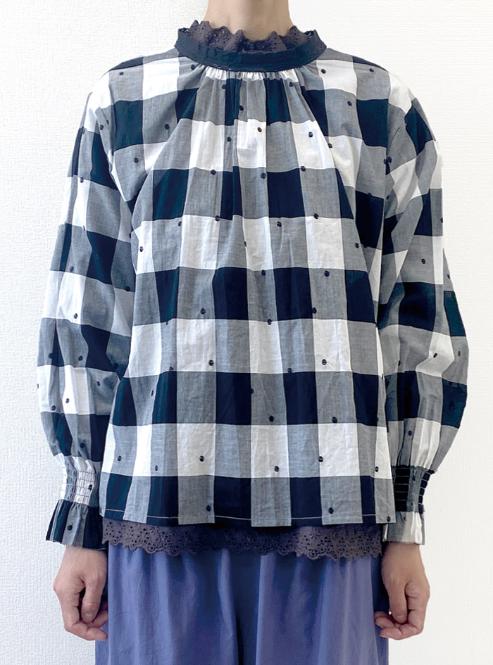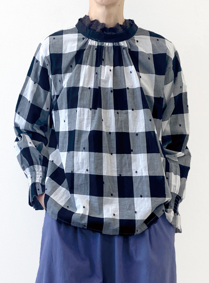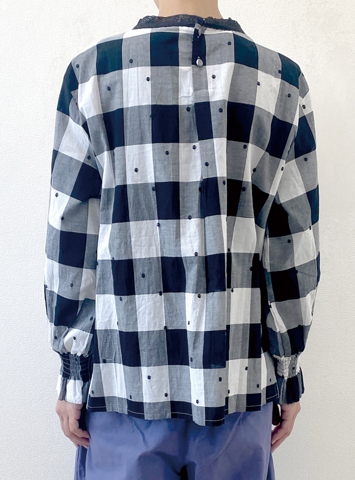 先染めのチェック生地に、ドット刺繍をあしらって雰囲気よく仕上げたコットン生地のプルオーバー。