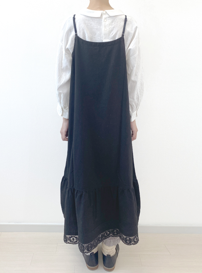 柔らかなコットンビエラ生地を使ったガーリーなペチキャミワンピース。
