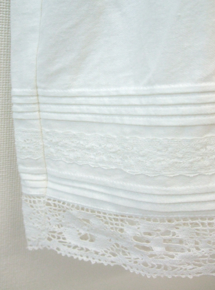 ティアード切替に、裾周りにたっぷりのピンタックとレースでガーリーなデザインに仕上げています。