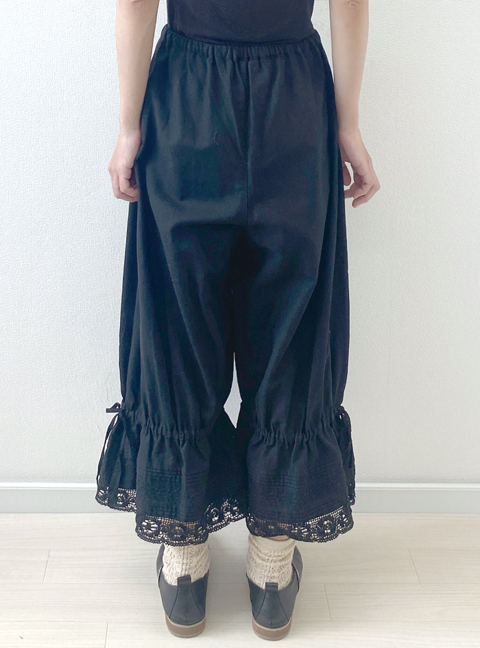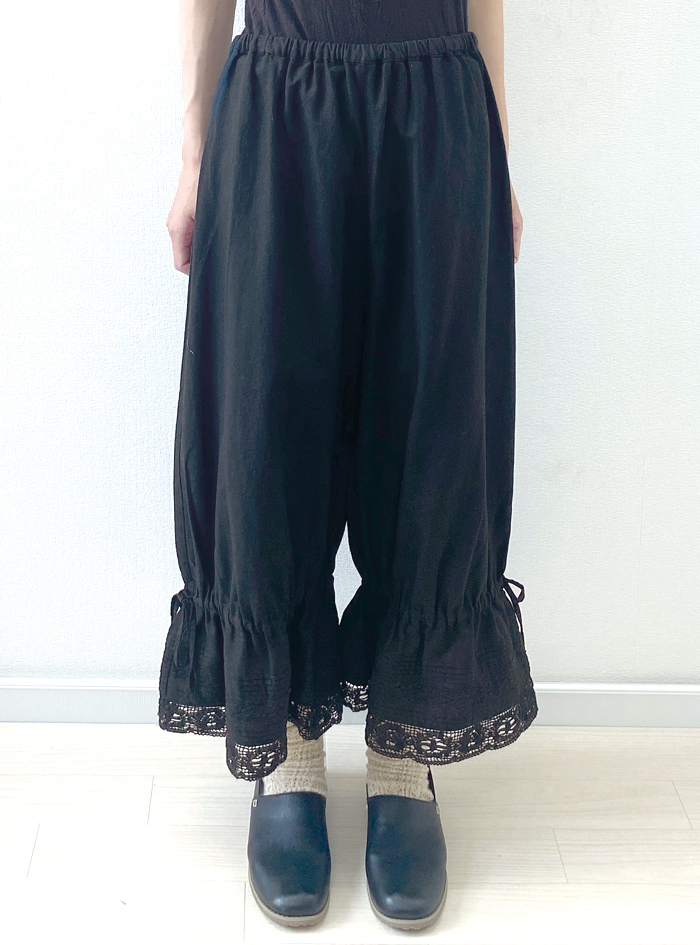 柔らかなコットンビエラ生地を使ったガーリーなペチキュロットパンツ。