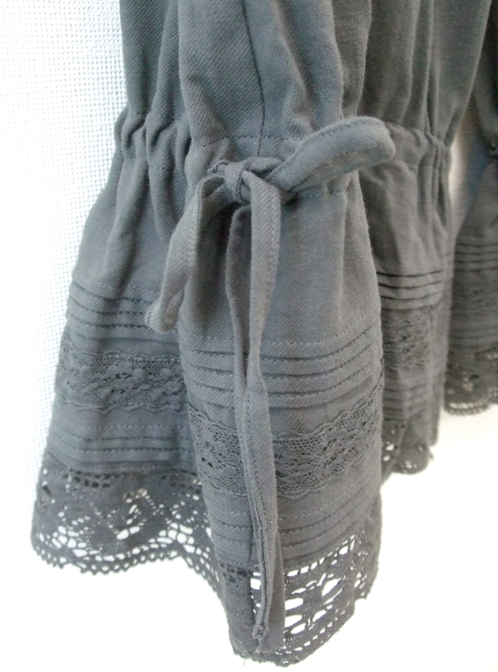 ティアード切替に、裾周りにたっぷりのピンタックとレースでガーリーなデザインに仕上げています。