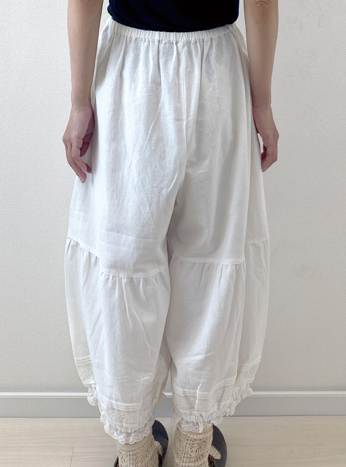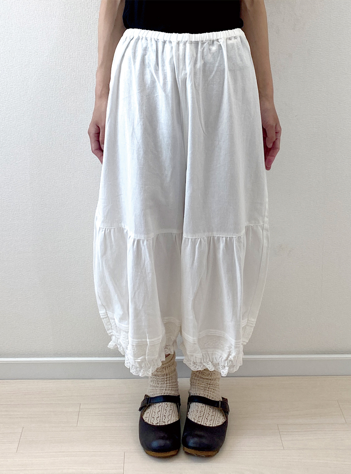 柔らかなコットンビエラ生地を使ったガーリーなペチパンツ。