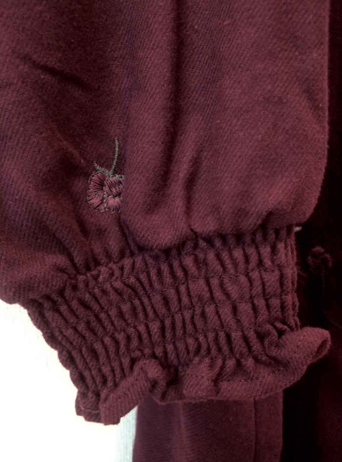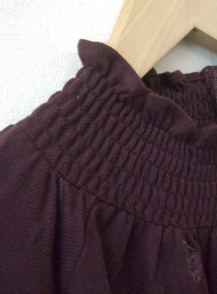 シャーリング衿と袖口で、着脱しやすく可愛いデザインに仕上げています。