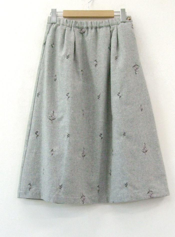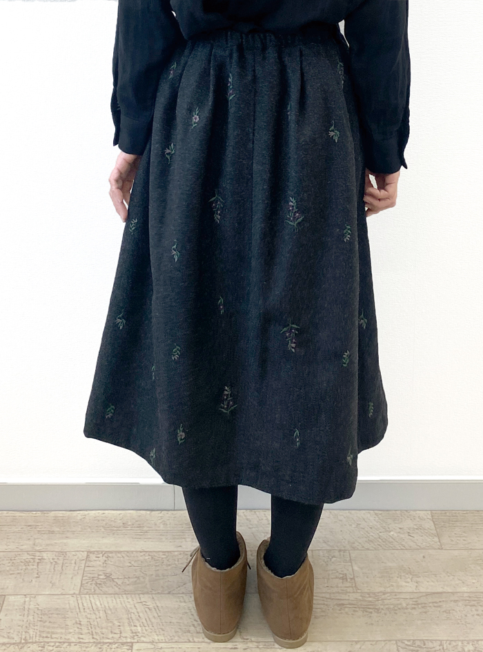 フェルト状の生地で冷たい風を防いでくれる暖かなール混エターミンのスカート。