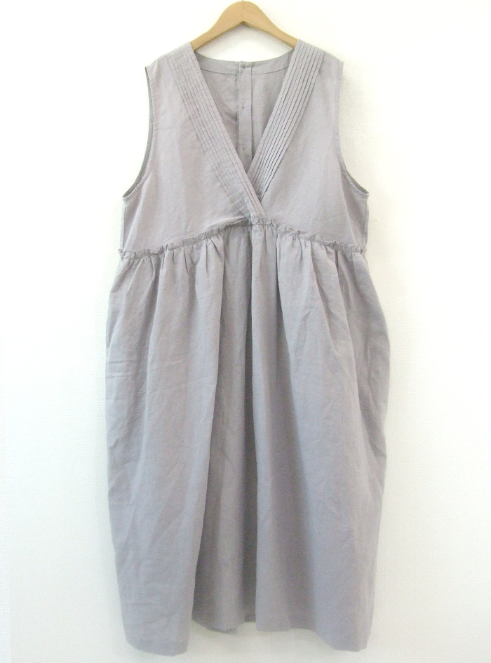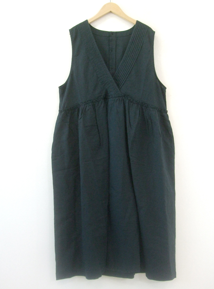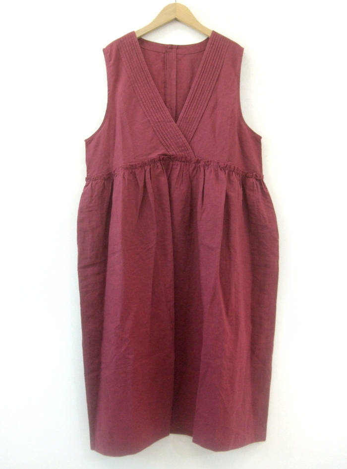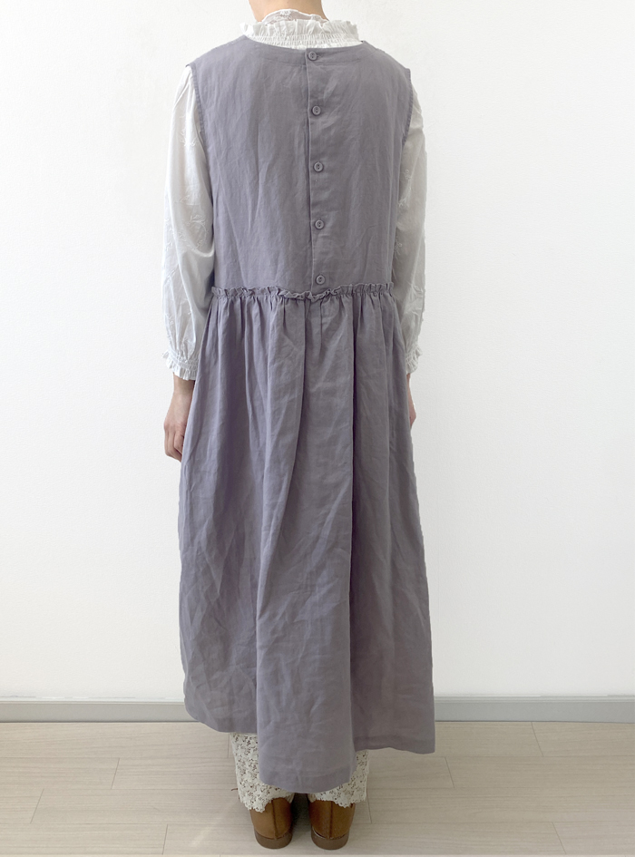 リネン100%のナチュラルな平織生地のジャンパースカート。