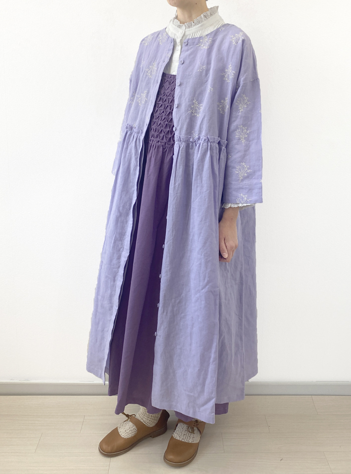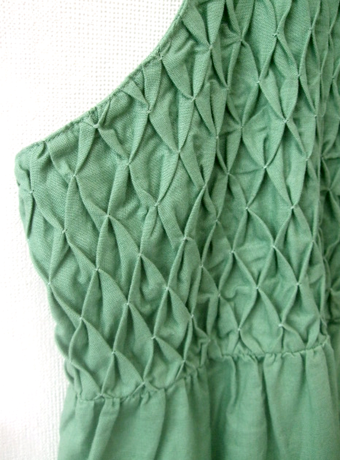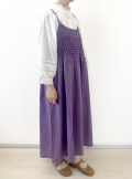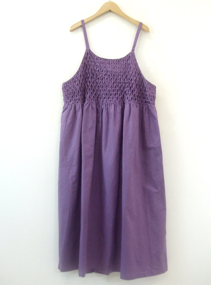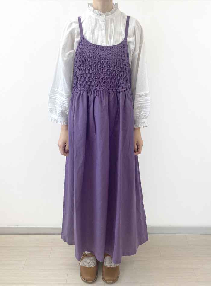 フロントにたっぷりあしらったスモッキングが印象的なデザインです。