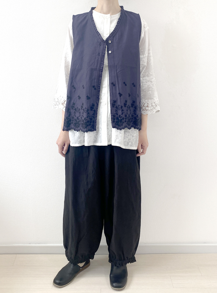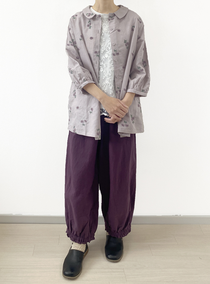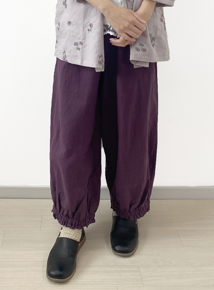 裾はゴム入りのカフスパンツで可愛いデザインに仕上げています。
