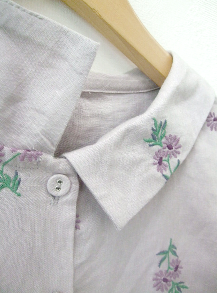 大きめのフラットカラーにボタンカフスで、どこかクラシカルな雰囲気漂うデザインになっています。