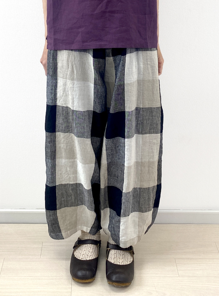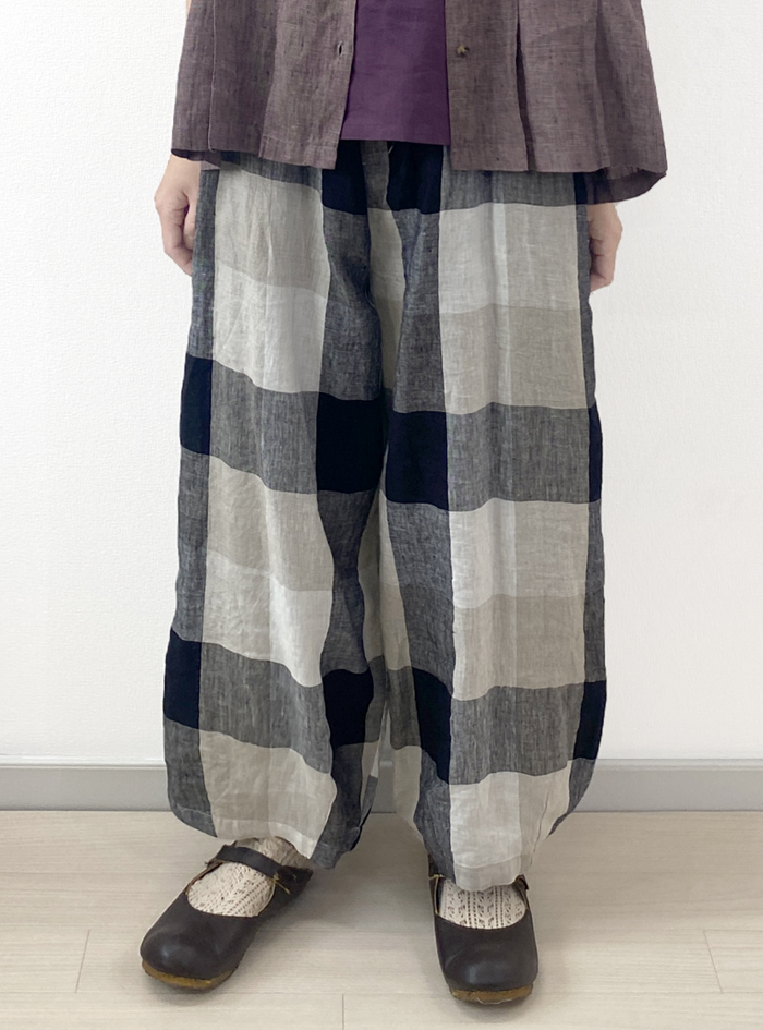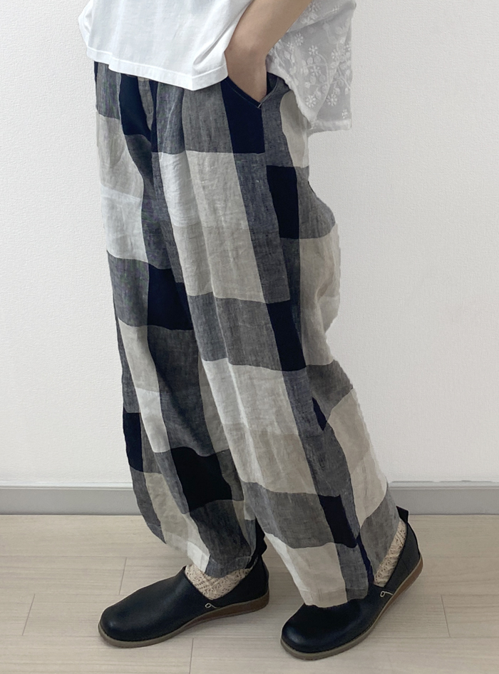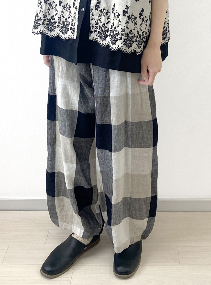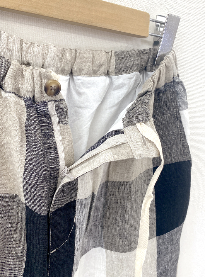 リネン素材で雰囲気あるチェック柄に織り上げた、リネンチェックパンツ。