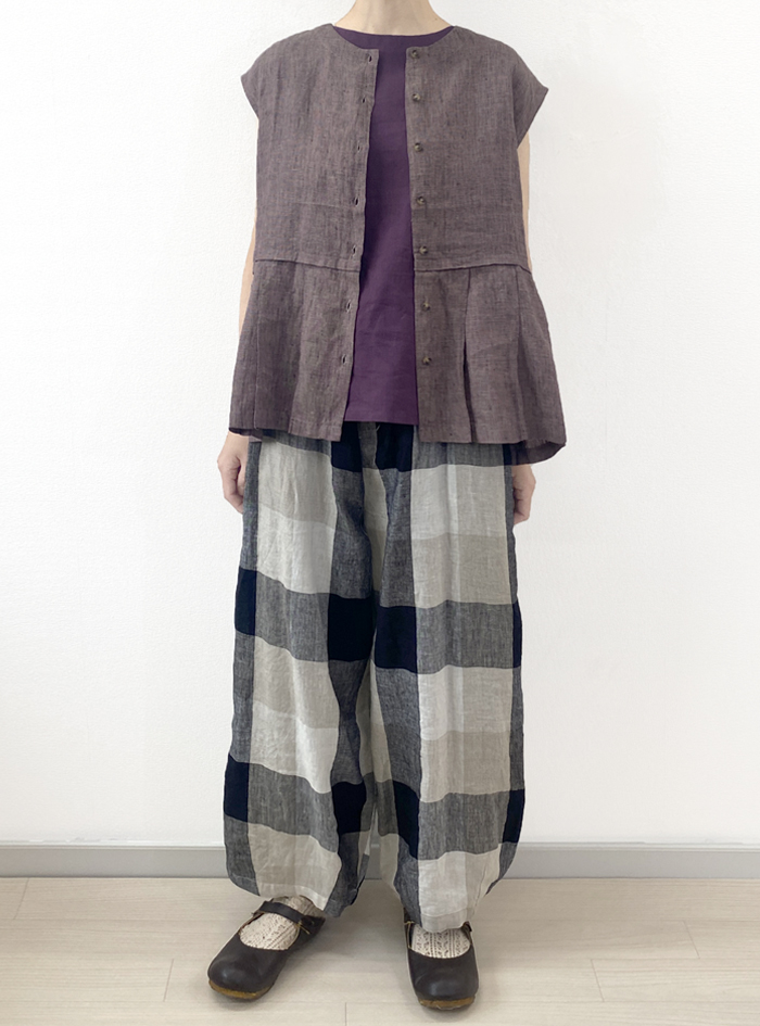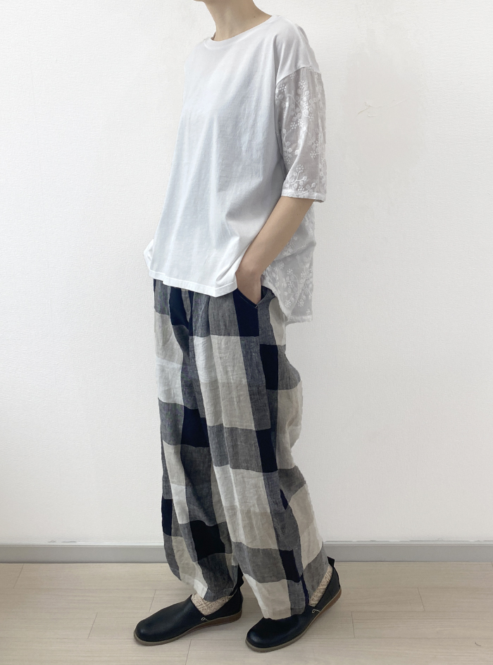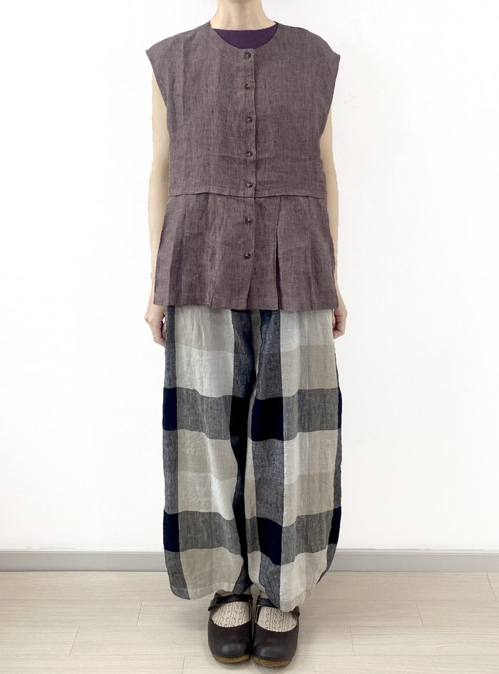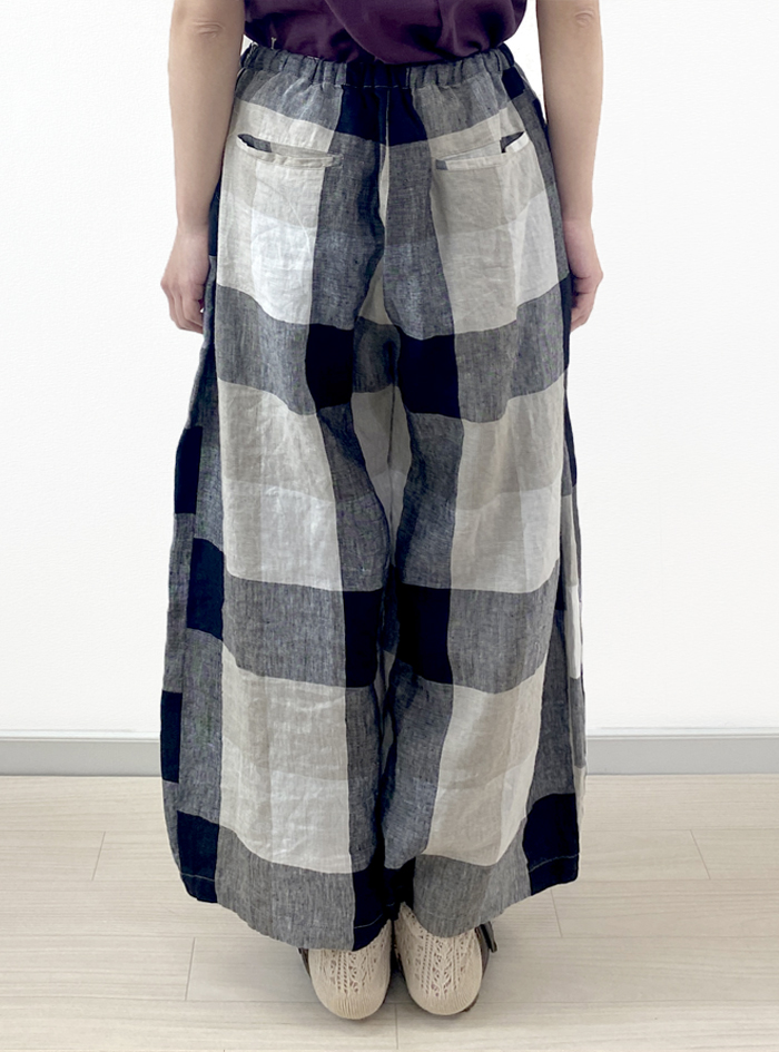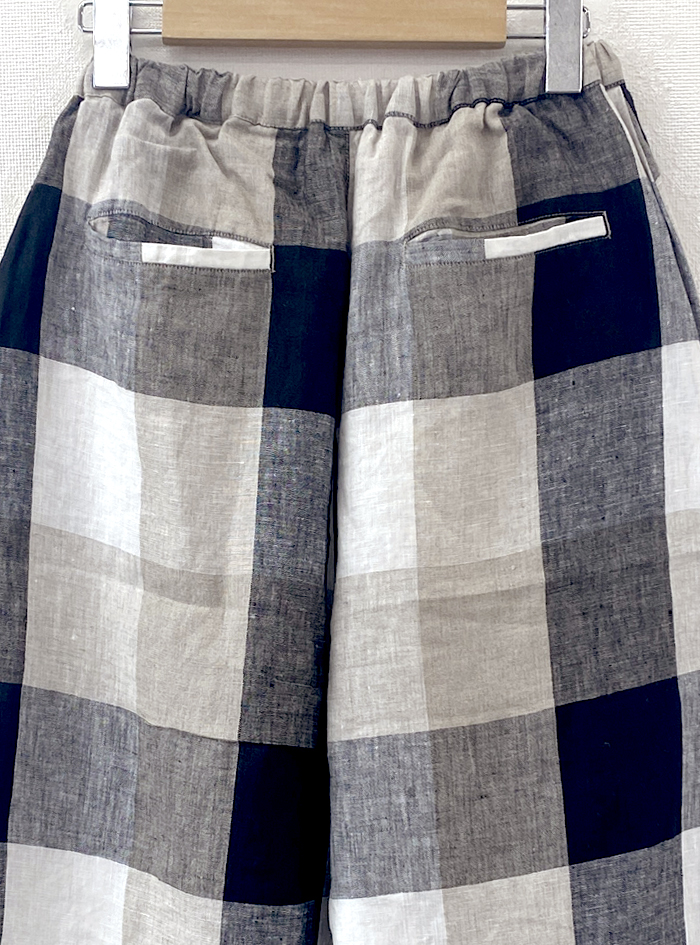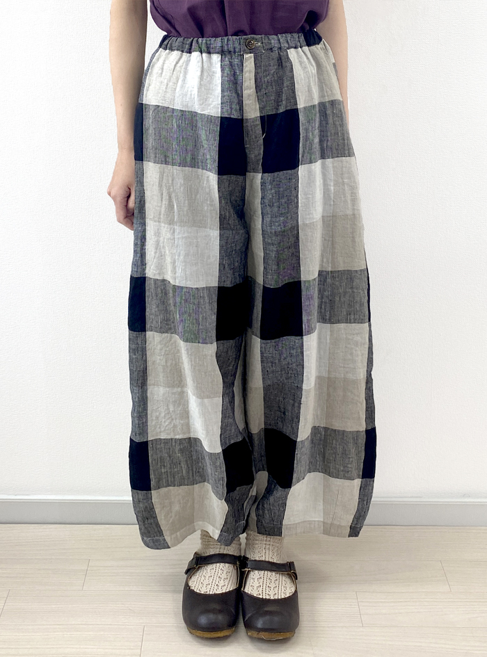 リネン素材で雰囲気あるチェック柄に織り上げた、リネンチェックパンツ。