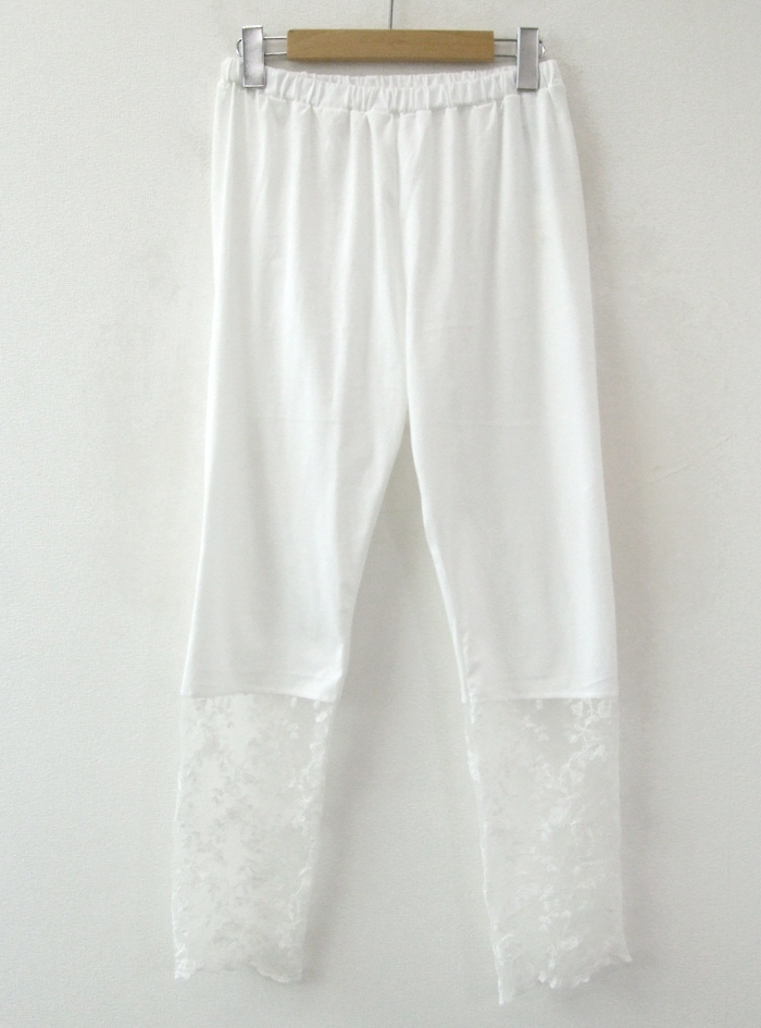 フェミニンなチュールレースと、コットン天竺の切替レギンス。