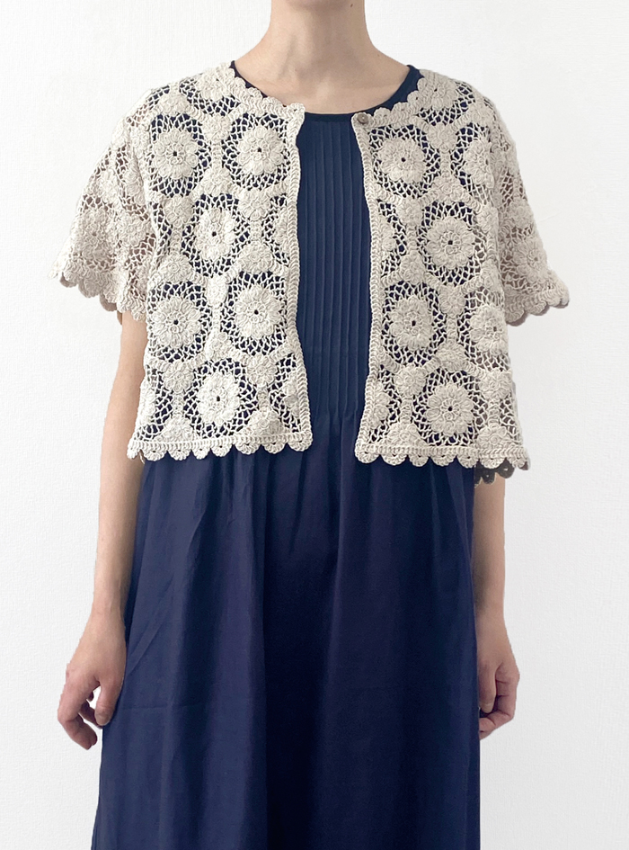 モチーフ編みで、ナチュラルな雰囲気に仕上げています。