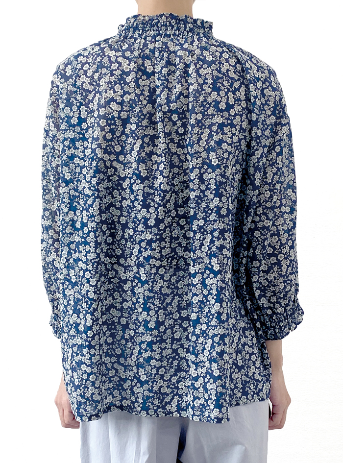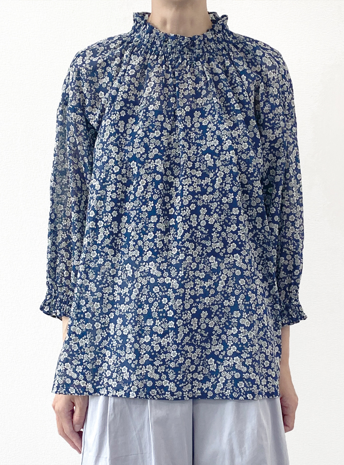 薄手のコットンにクラシックな小花プリント生地のプルオーバー。