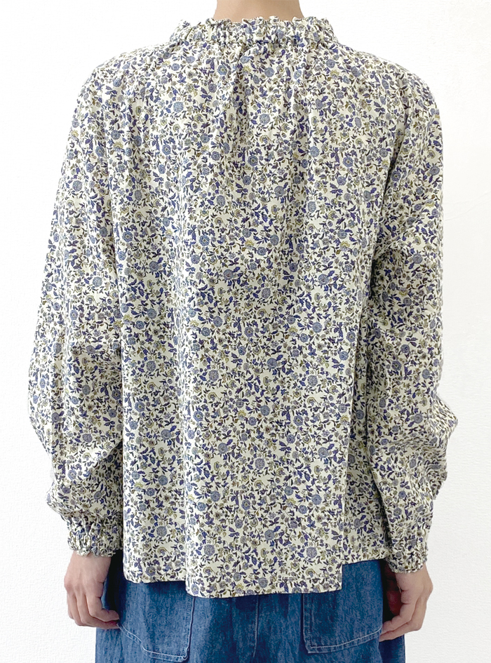 クラシックなペーズリー風の小花プリント生地のプルオーバー。
