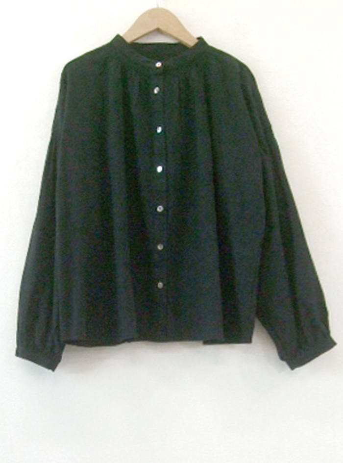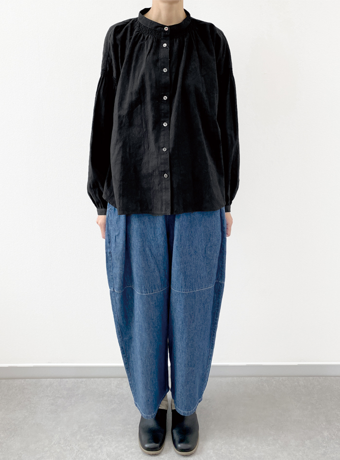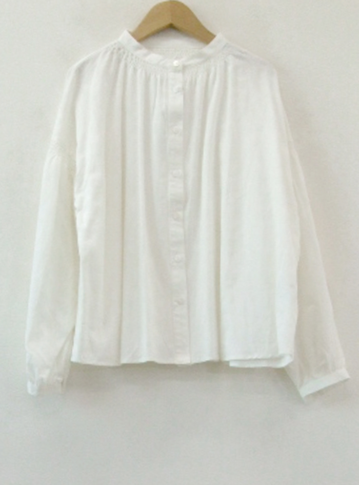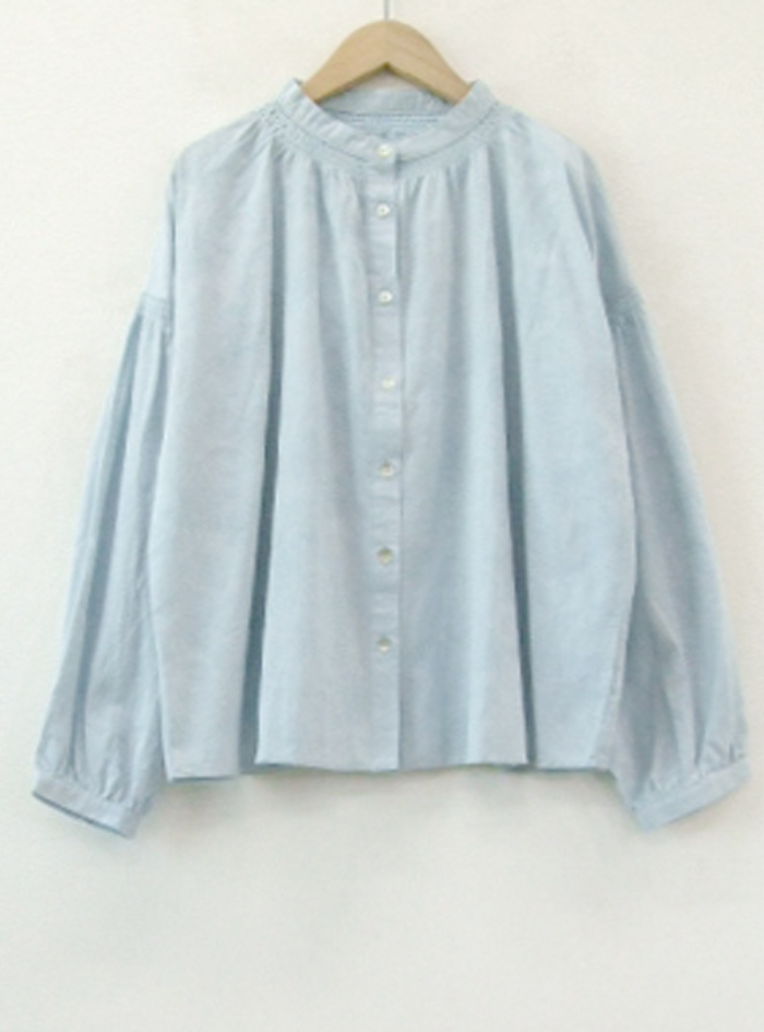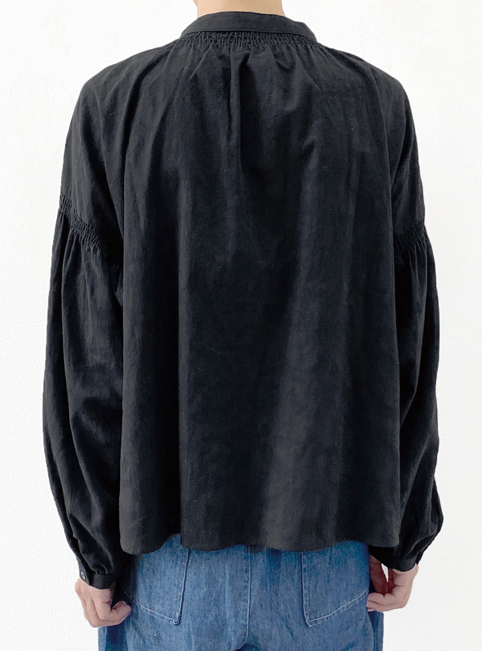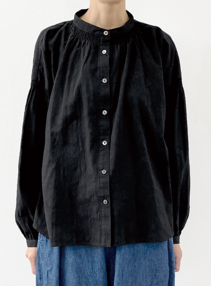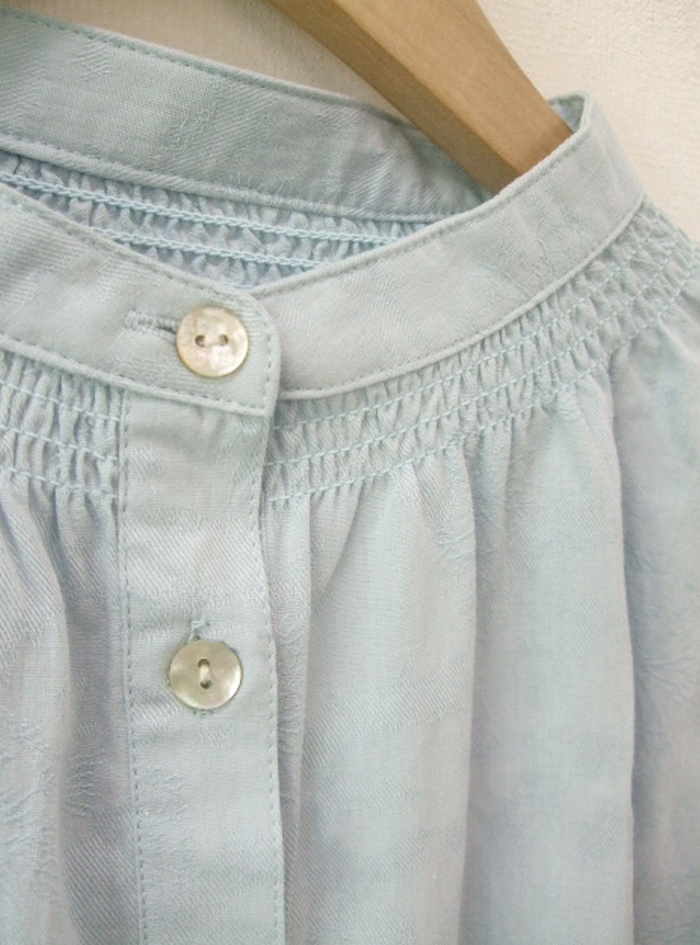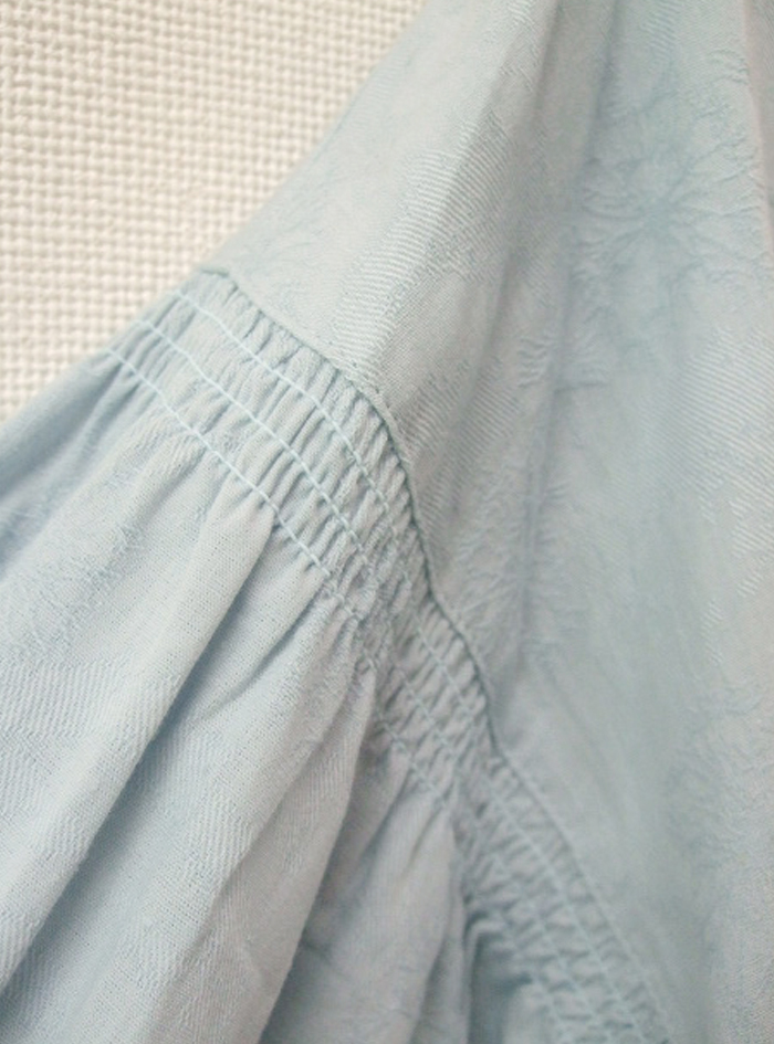 衿元と袖元にあしらったシャーリングデザインは、どこかクラシックな印象です。