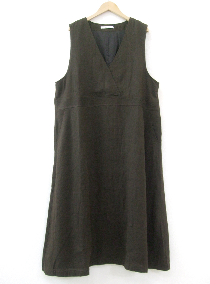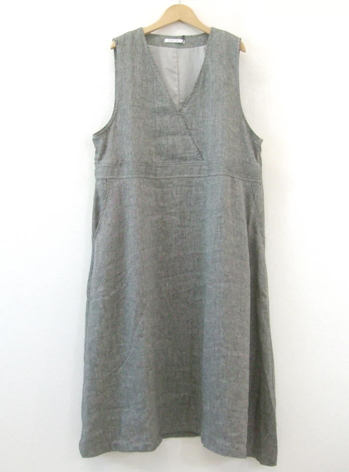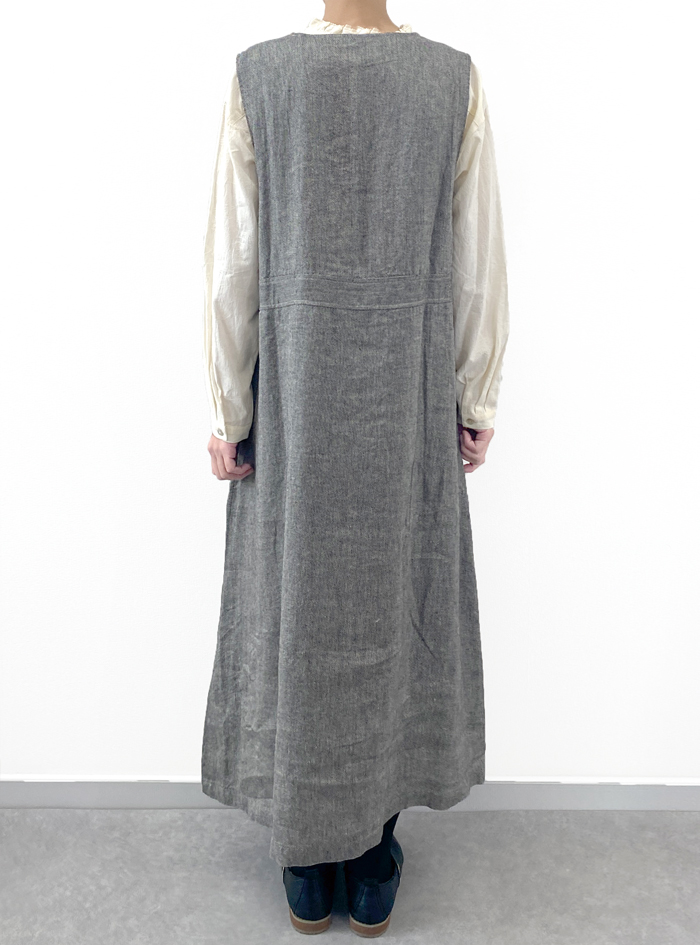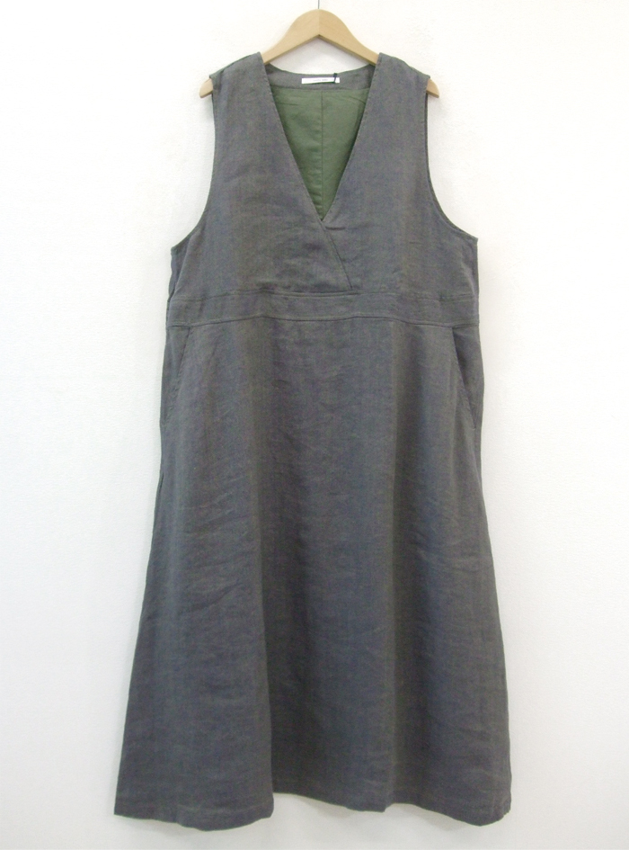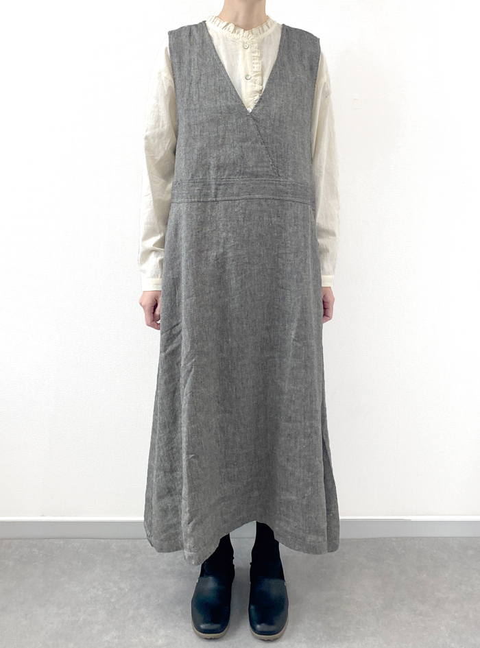 洗いをかけてワッシャー感を出したナチュラルな風合いが魅力のリネン綾のサロペットスカート。