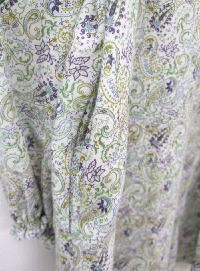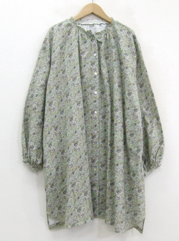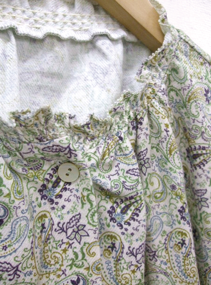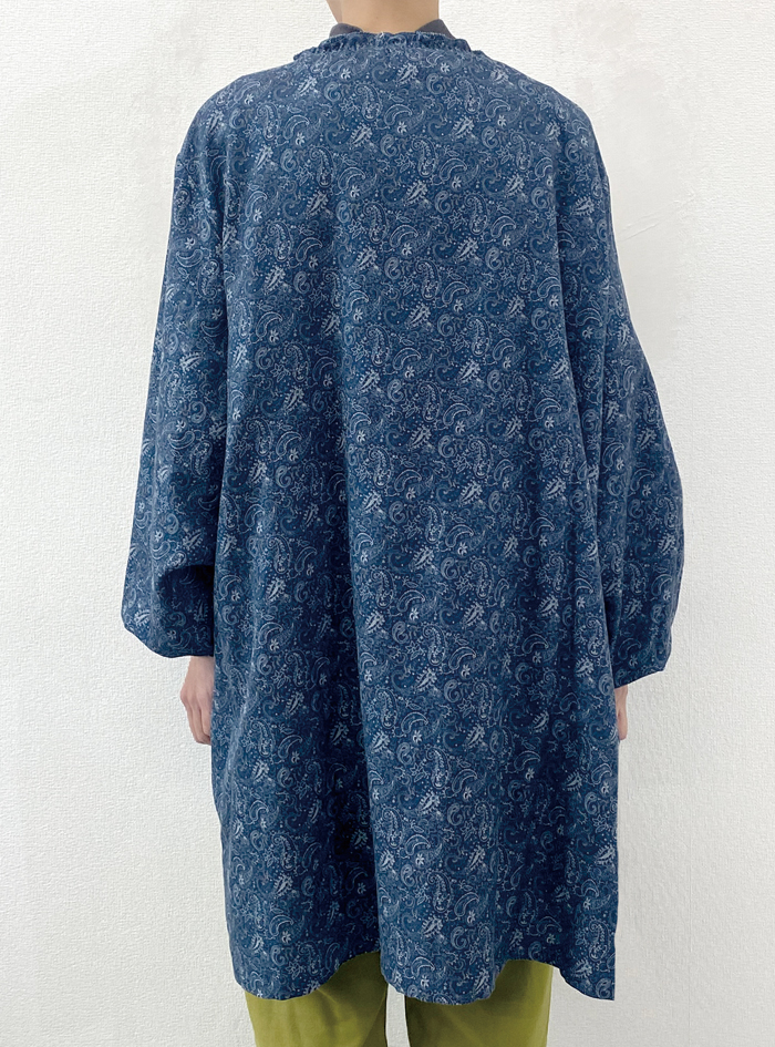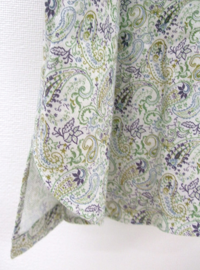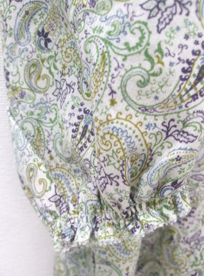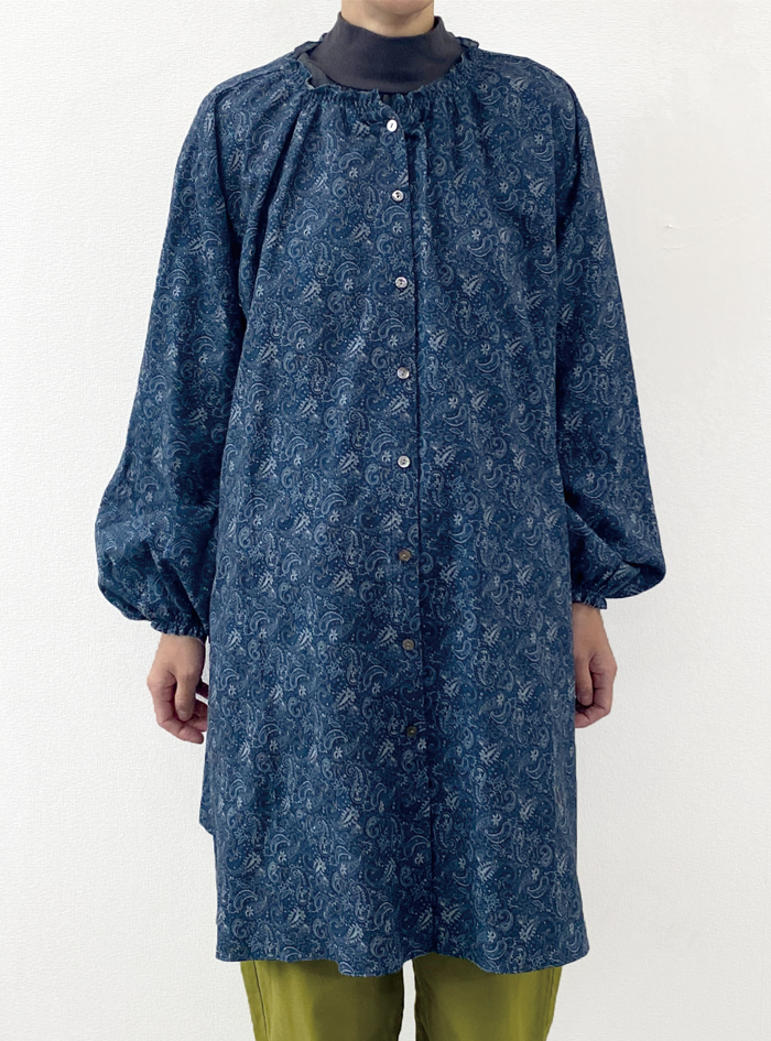 コットン綾織り生地にペーズリープリントをあしらったロングブラウス。