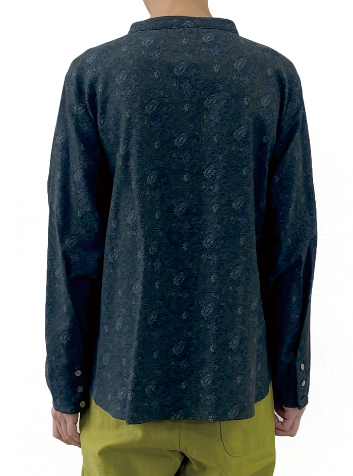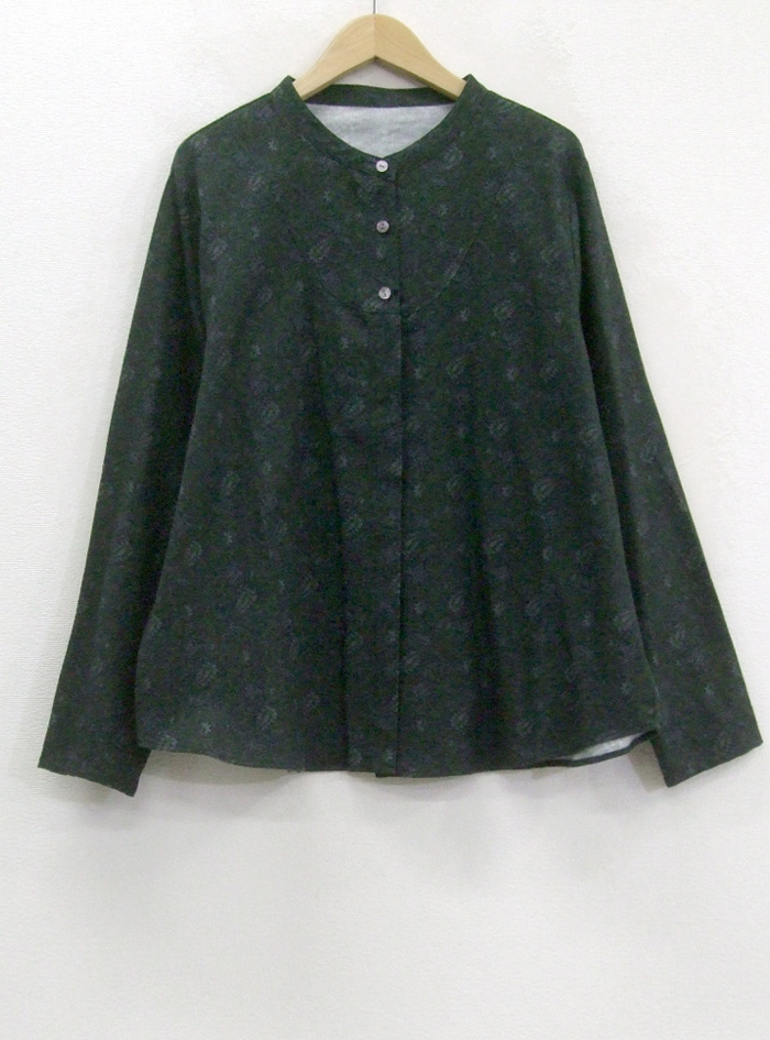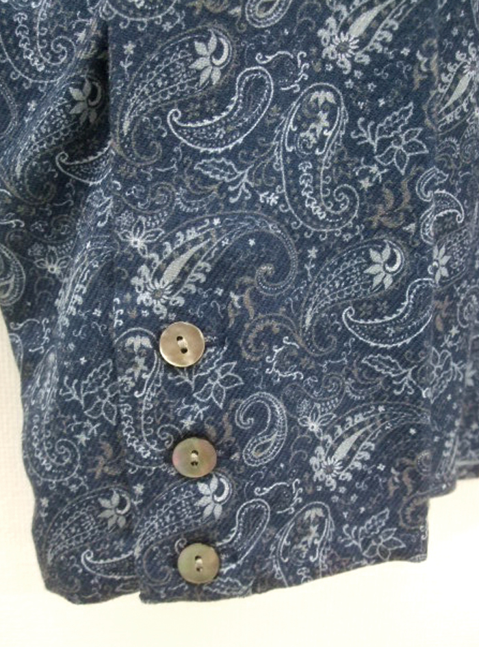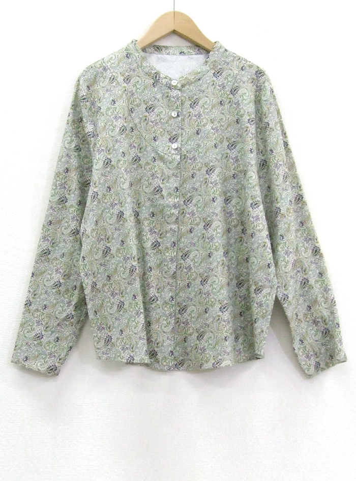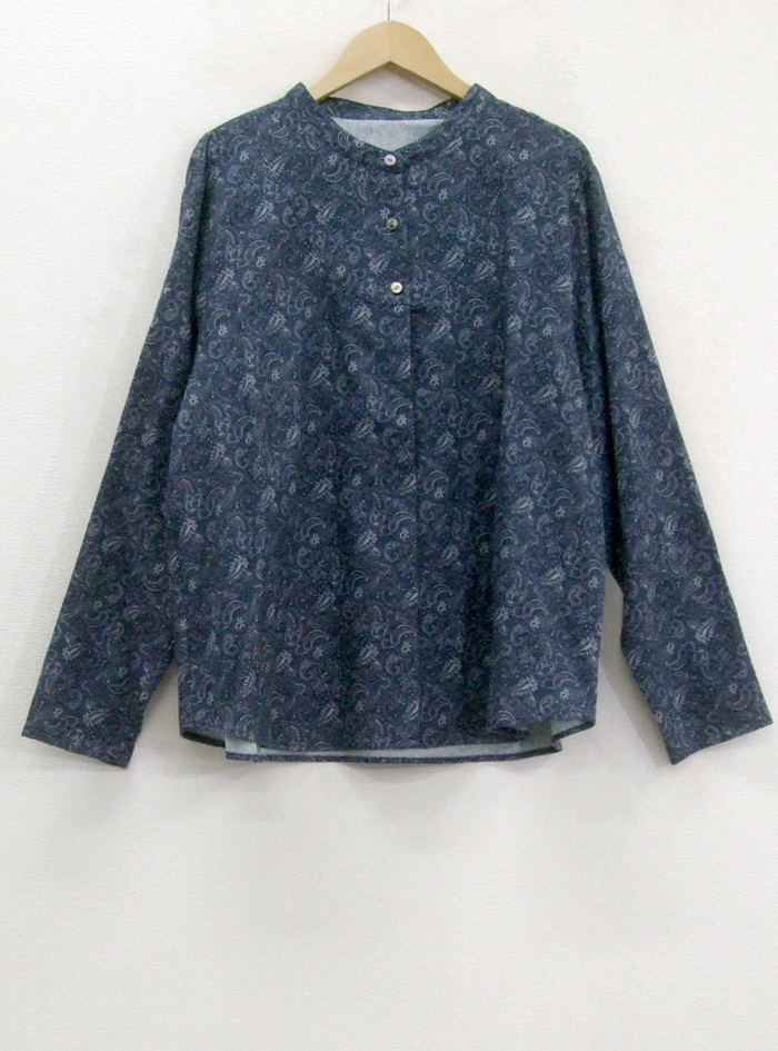 コットン綾織り生地にペーズリープリントをあしらったブラウス。