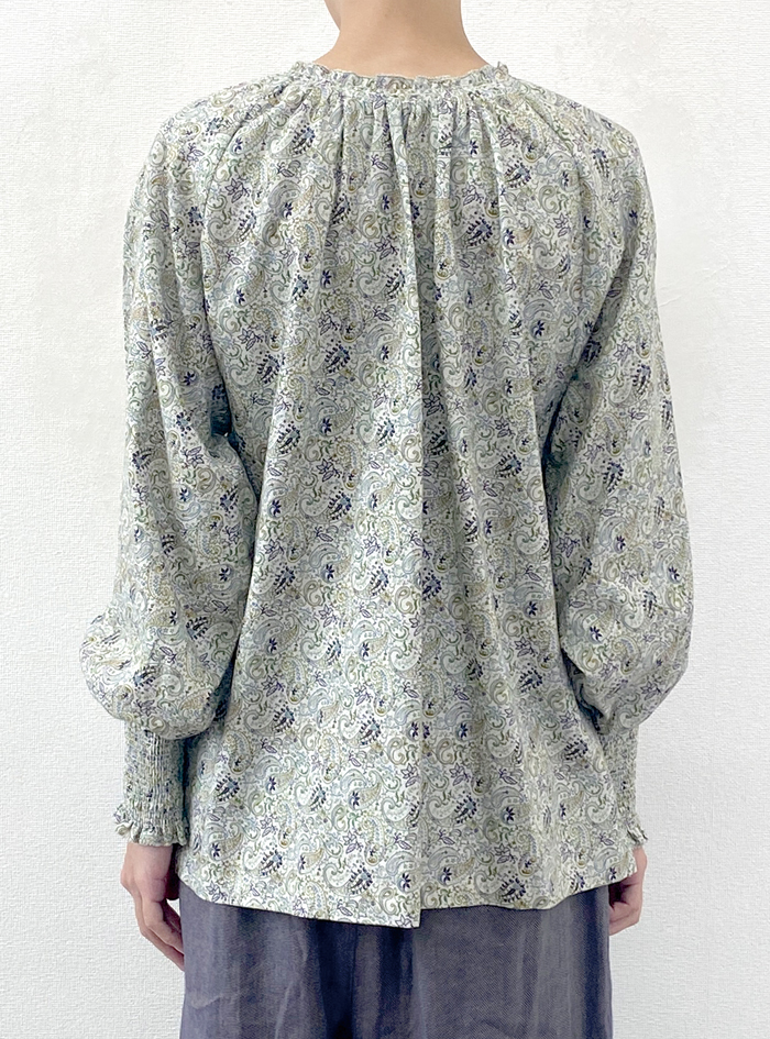 コットン綾織り生地にペーズリープリントをあしらったプルオーバー。