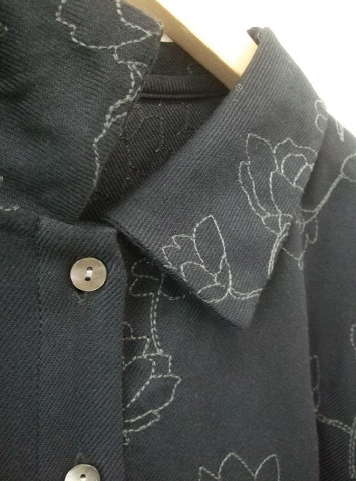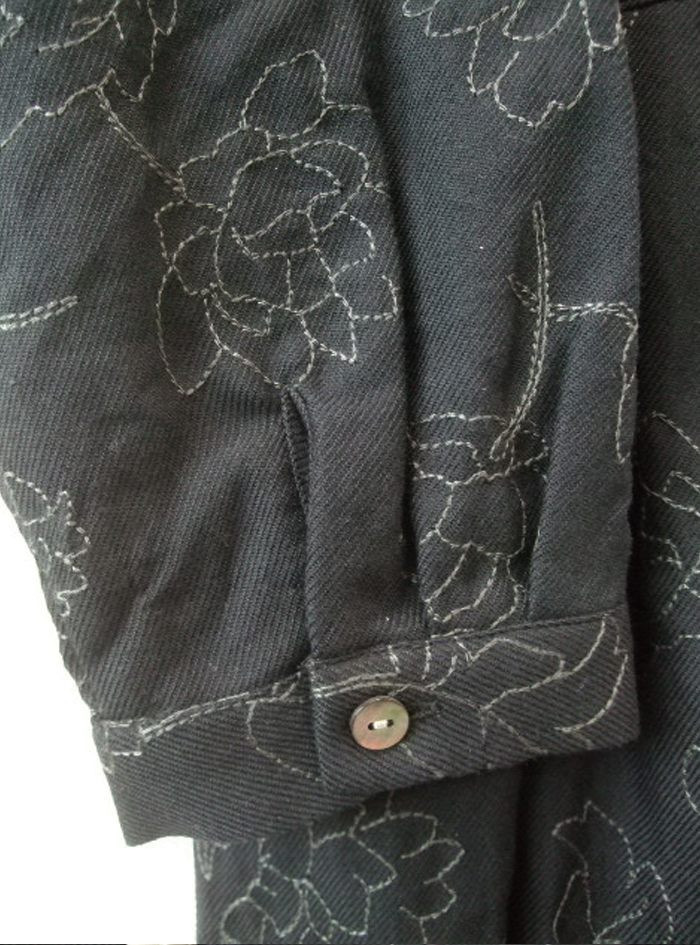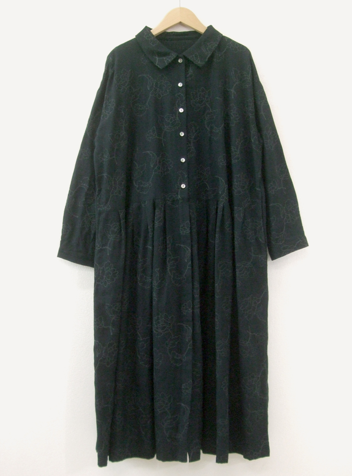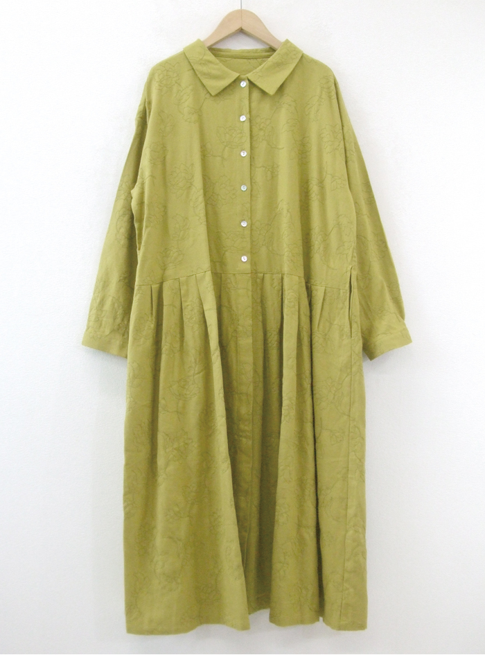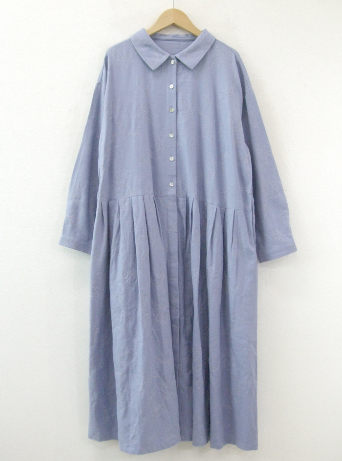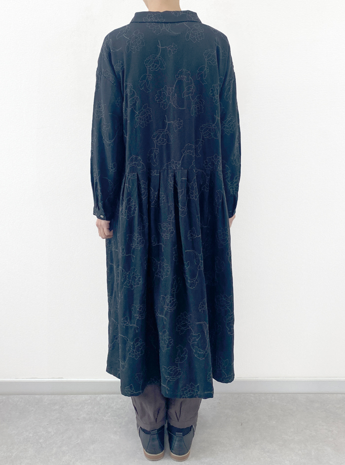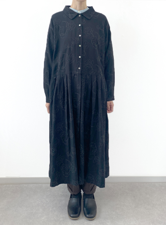 フラワーモチーフのステッチ刺繍生地のワンピース。