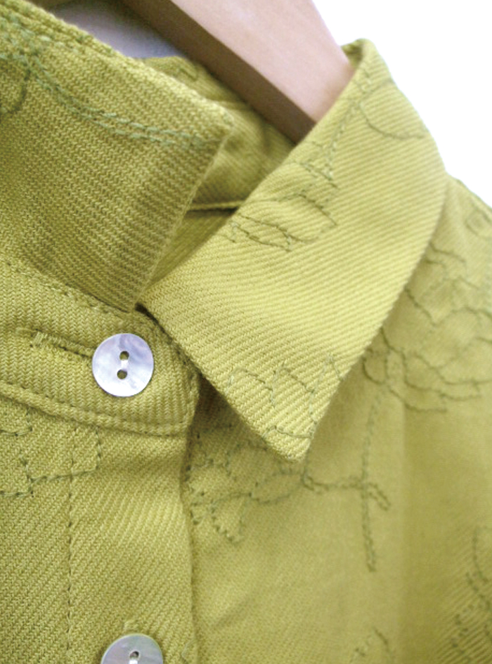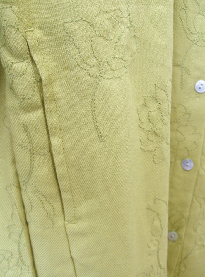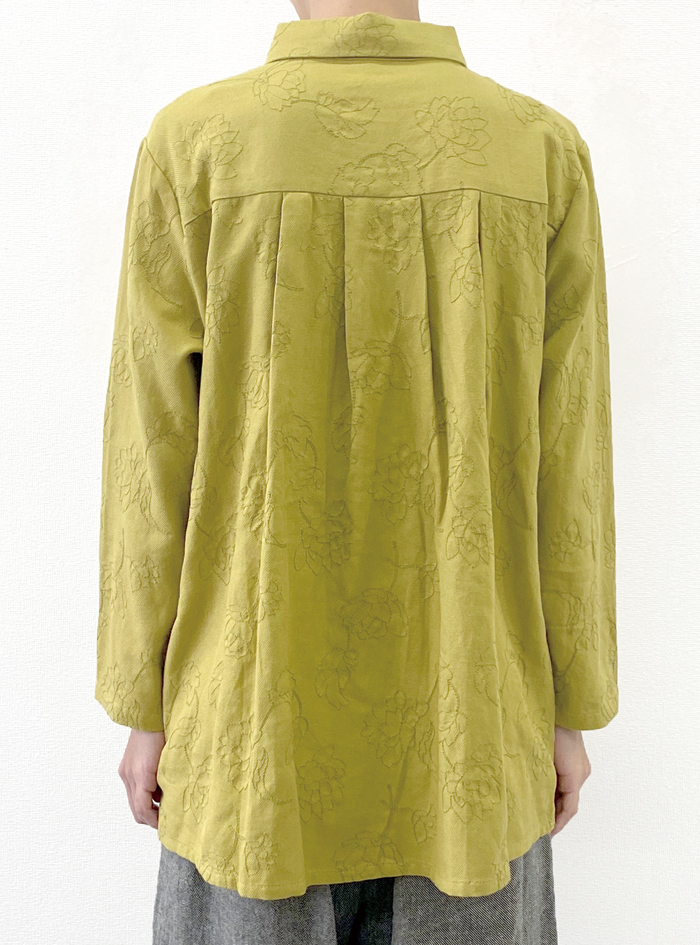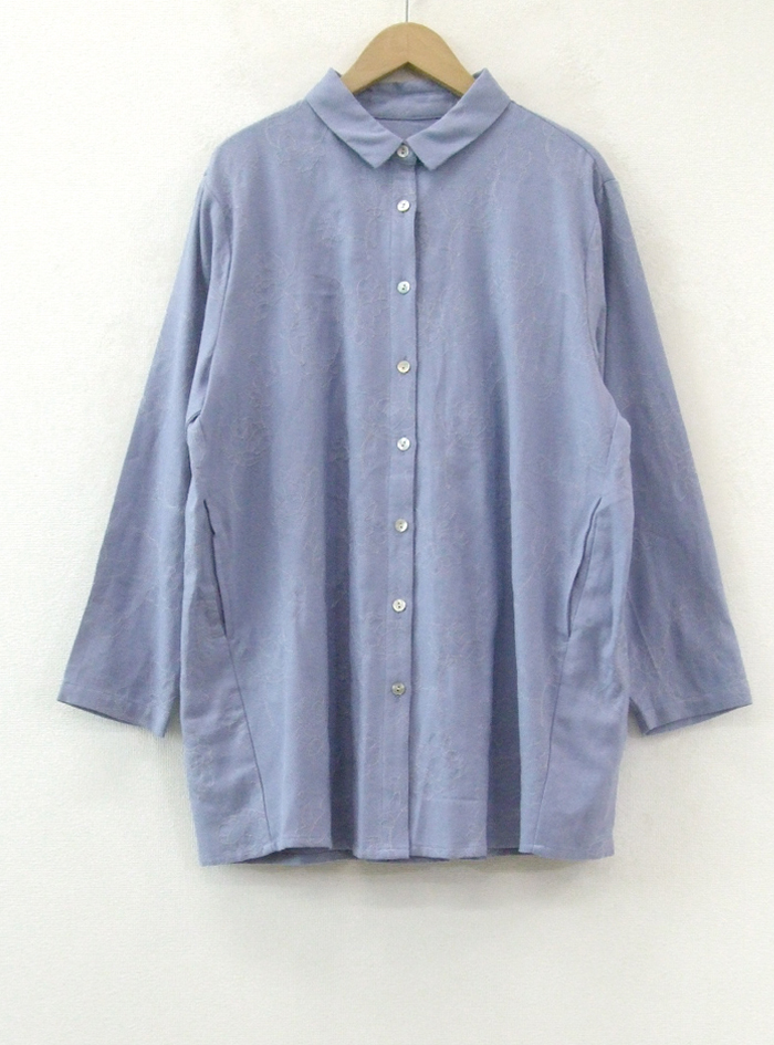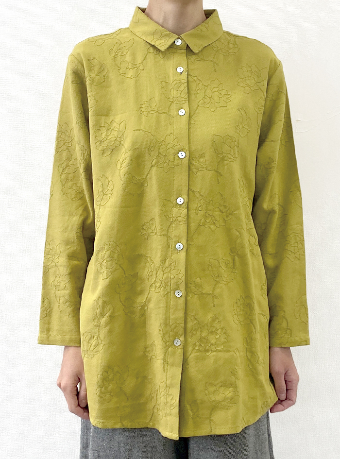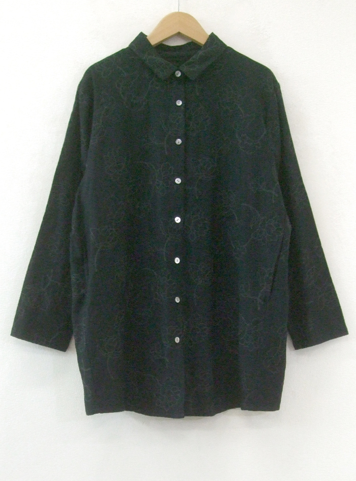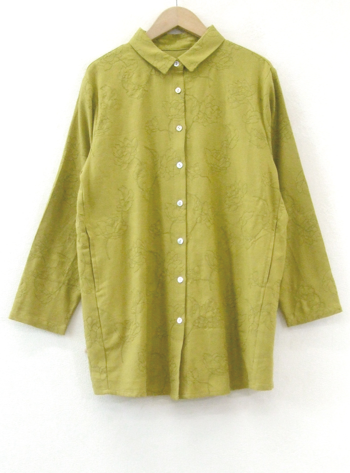 フラワーモチーフのステッチ刺繍生地のチュニックシャツ。