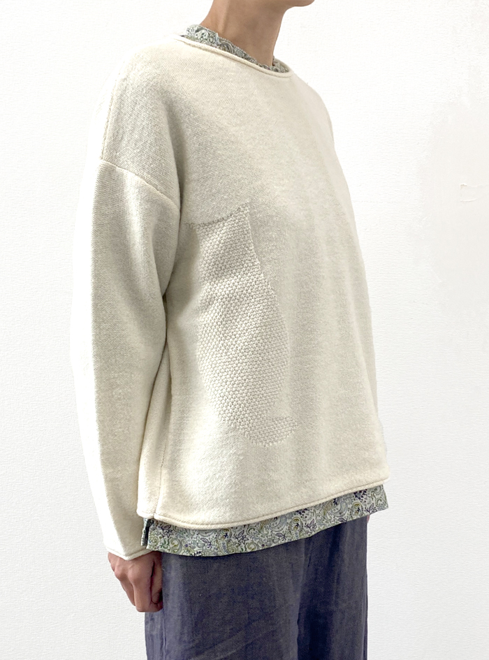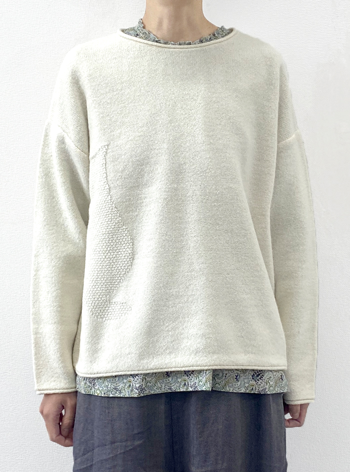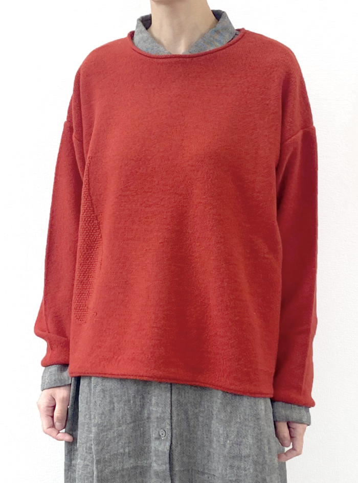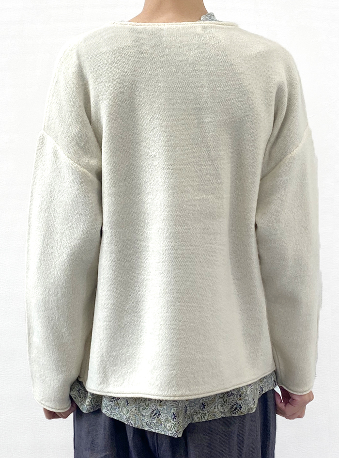 暖かく軽いウール100%の中ゲージニットプルオーバー。