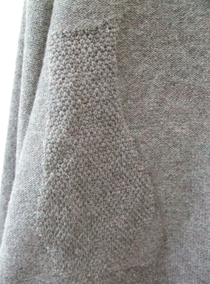 スタンダードなデザインの右下に、さりげないネコ柄を編み込んでいます。