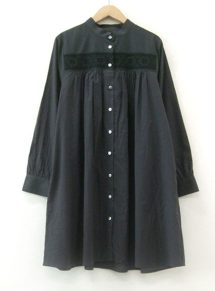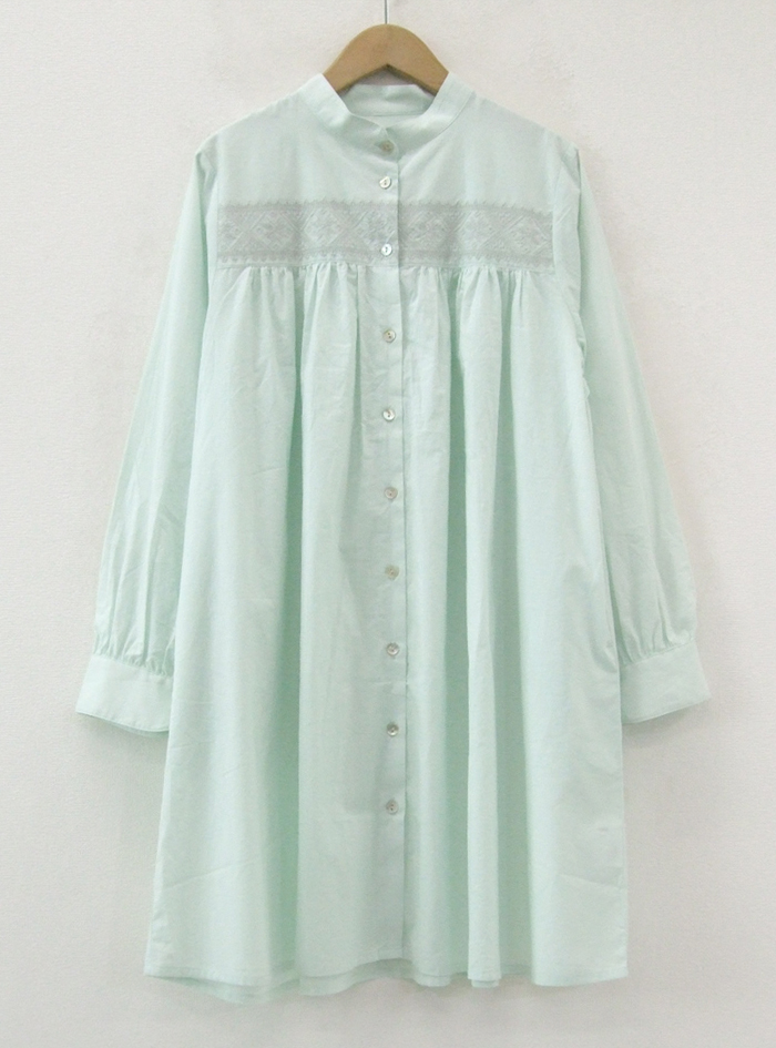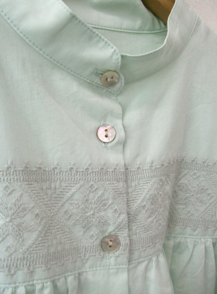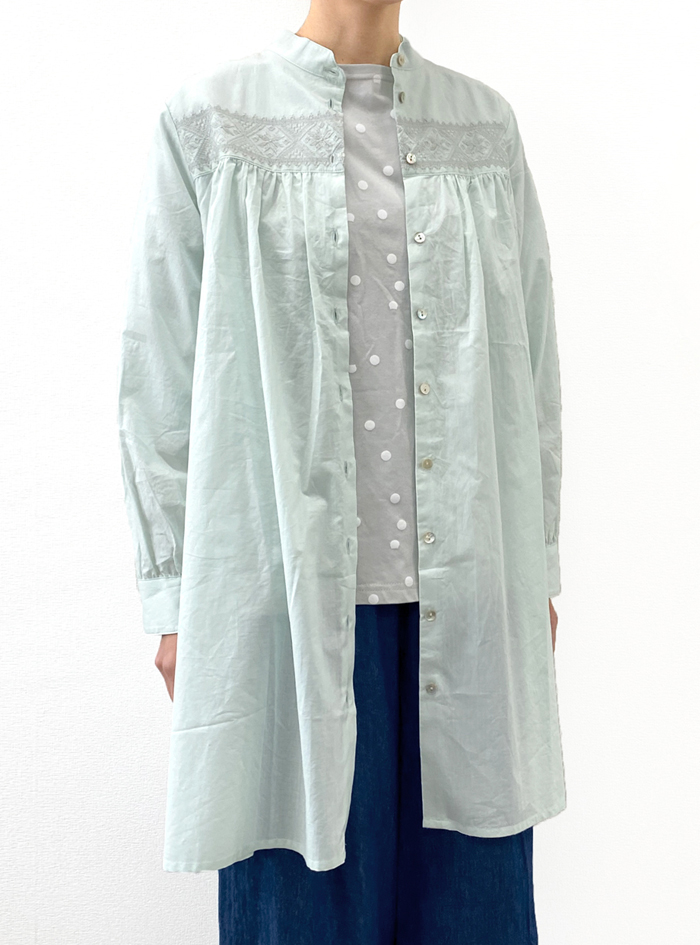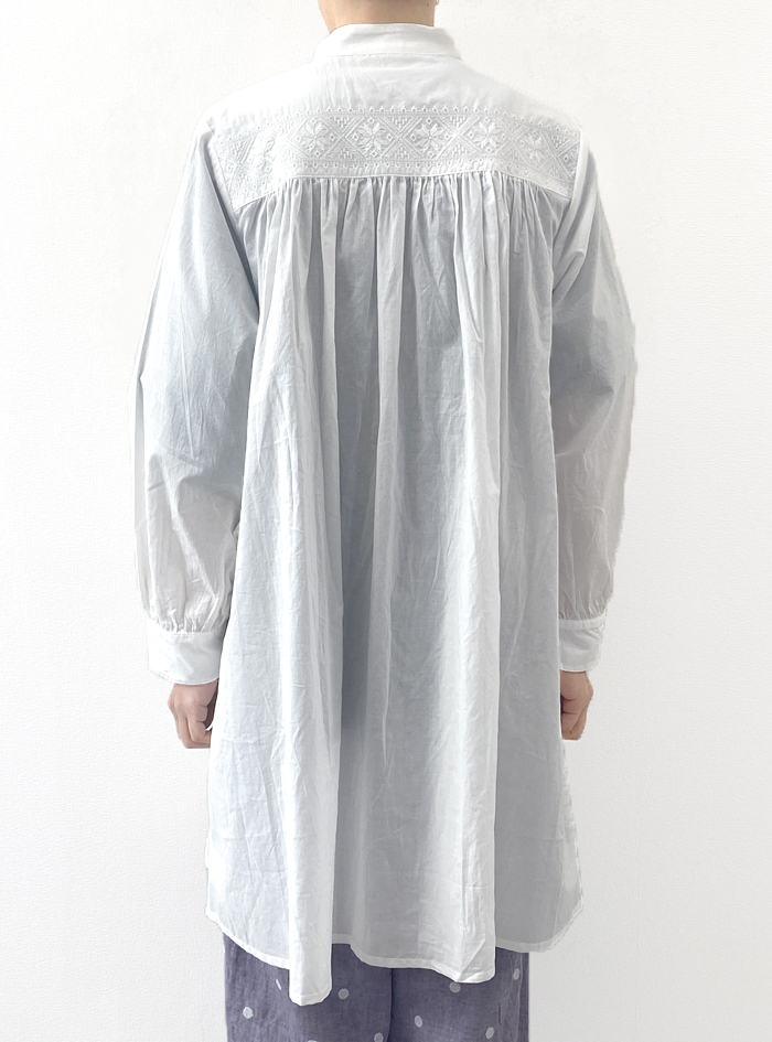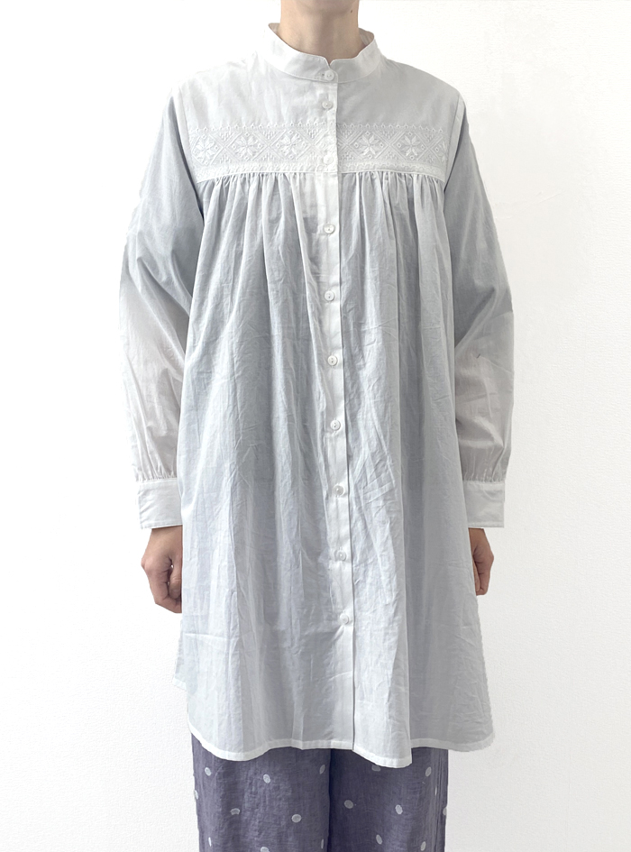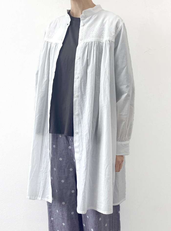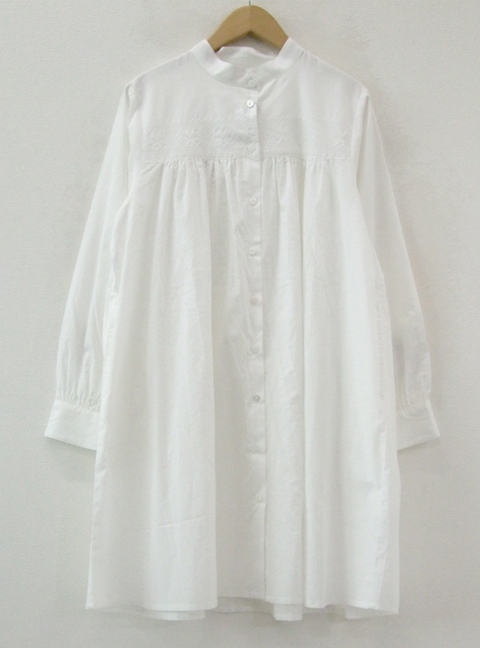 薄手のコットンローンに、オリエンタル風の刺繍をあしらったロングブラウス。