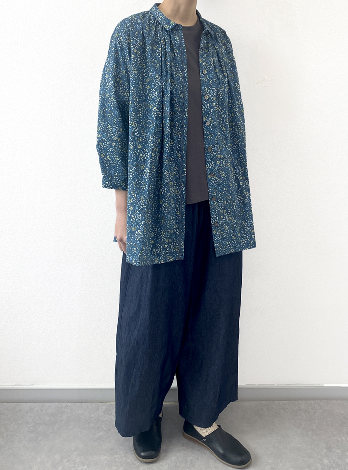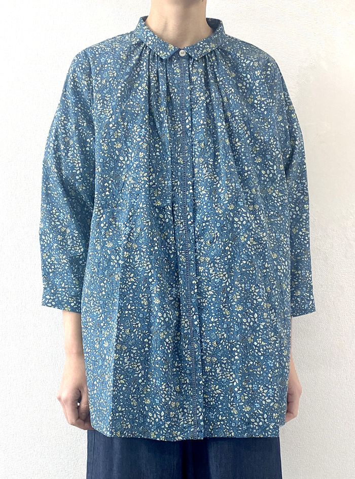 薄手のコットン生地に優しい小花柄が印象的なチュニックブラウス。