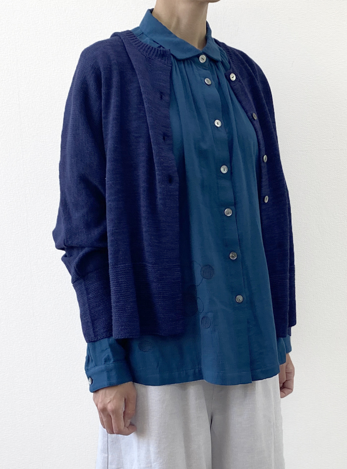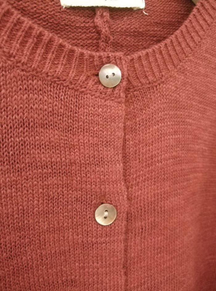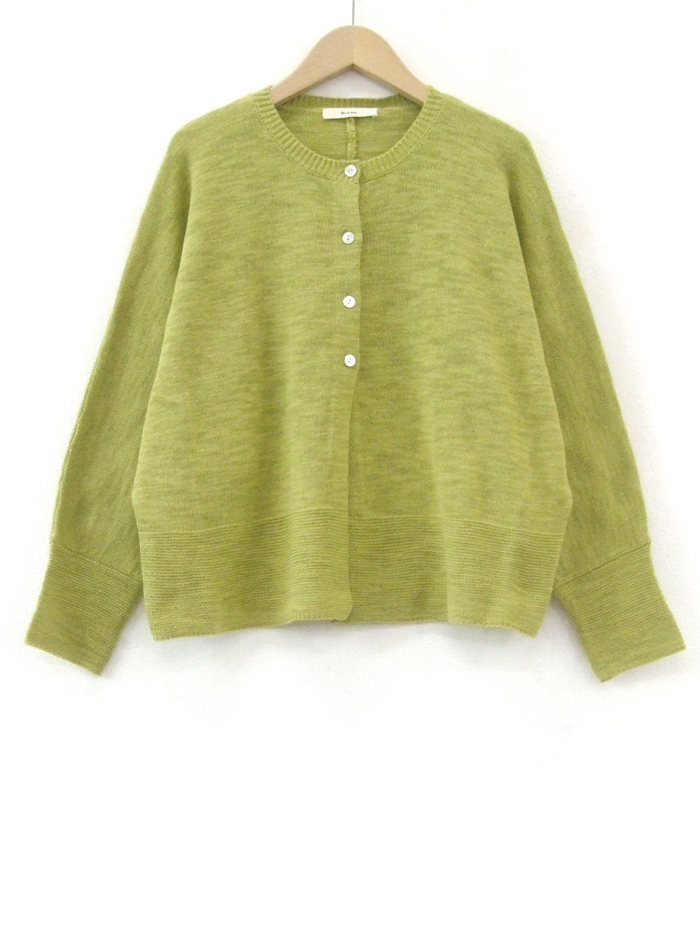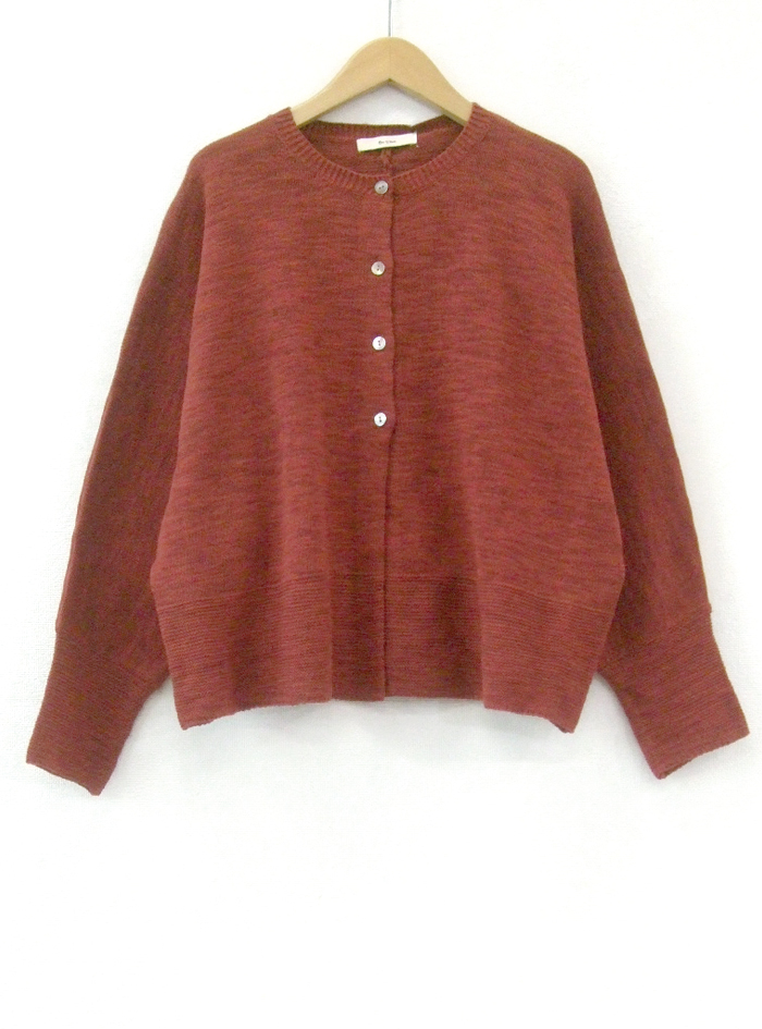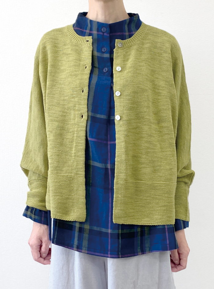 コットンリネンのスラブ糸で編み上げたニュアンスのあるナチュラルなニットカーデ。
