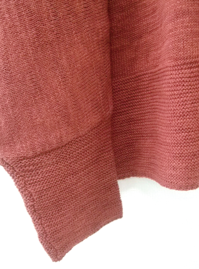 裾と袖口は編み柄を変えて、シンプルおしゃれなデザインに仕上げています。