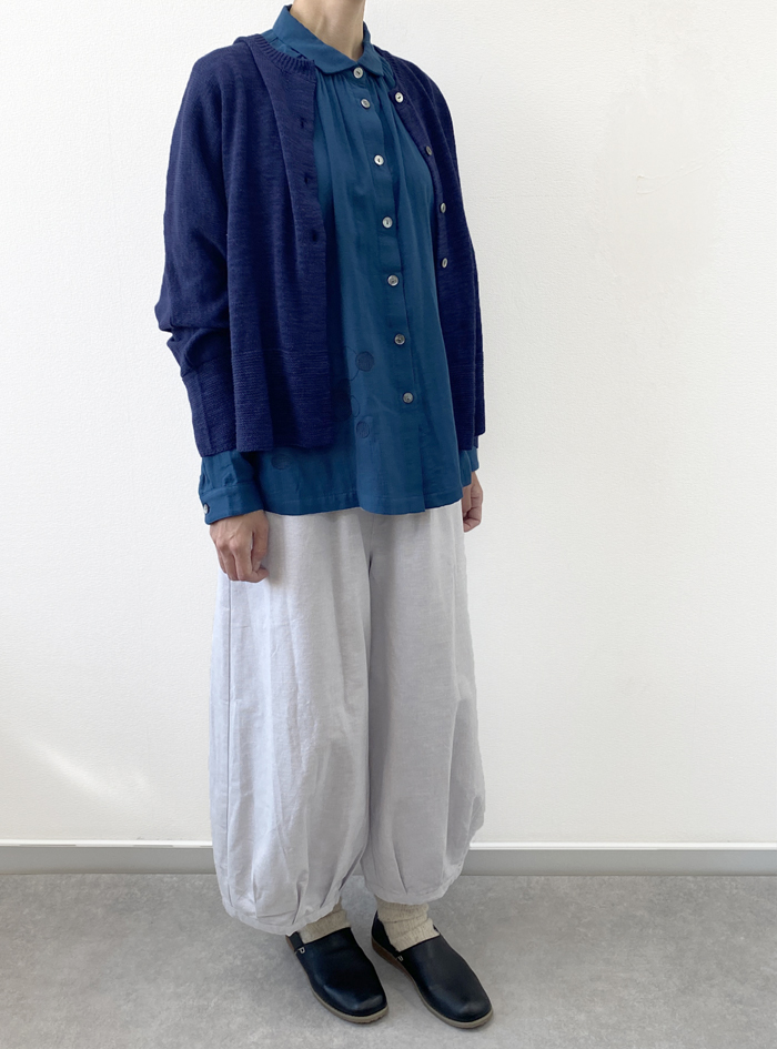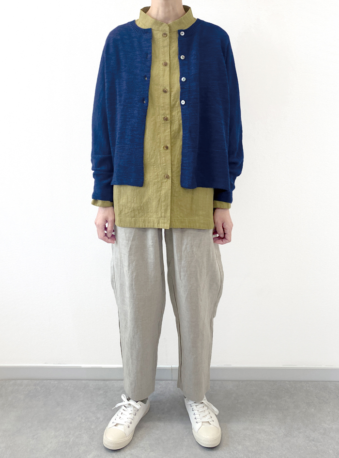 ゆったりドルマンスリーブで、ラフに羽織って雰囲気よく着こなせます。