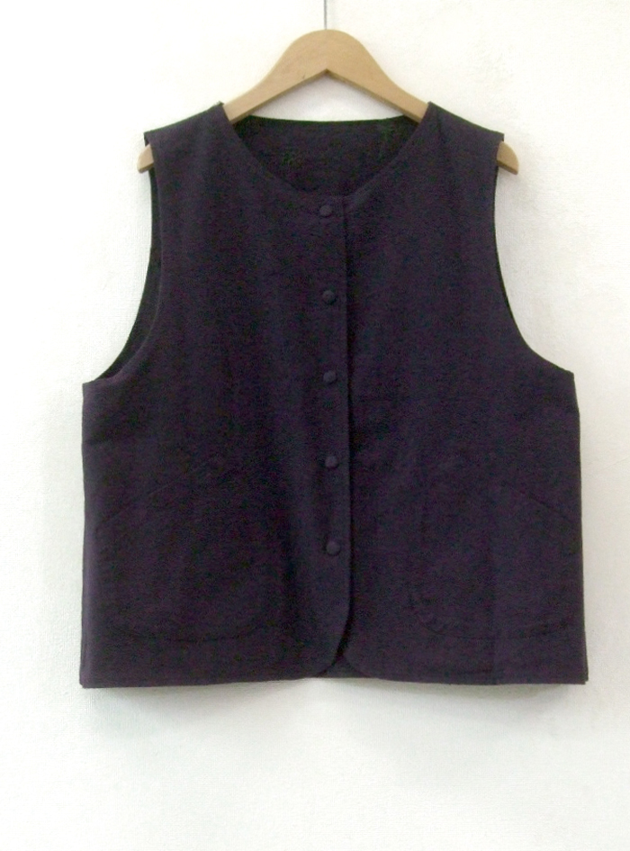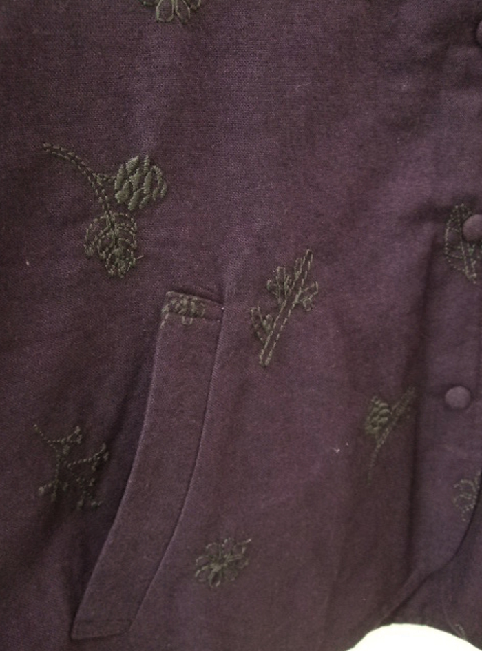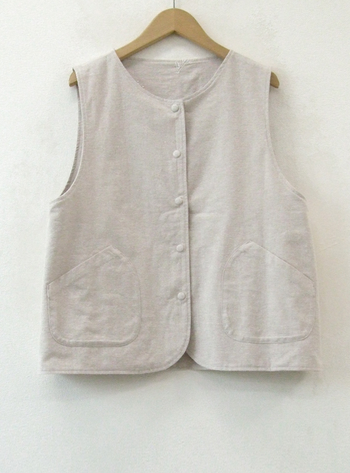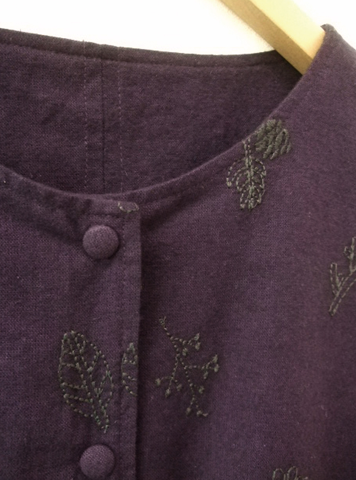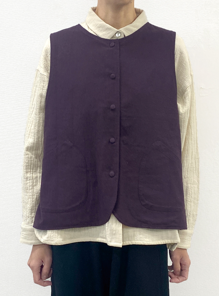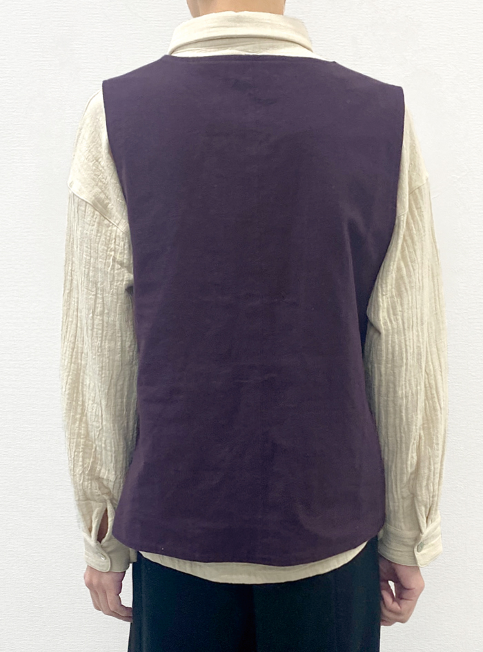 コットンシャンブレー生地に、冬らしい北欧風ボタニカル刺?をプラスしたベスト。
