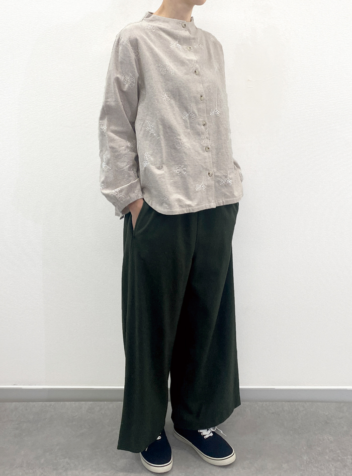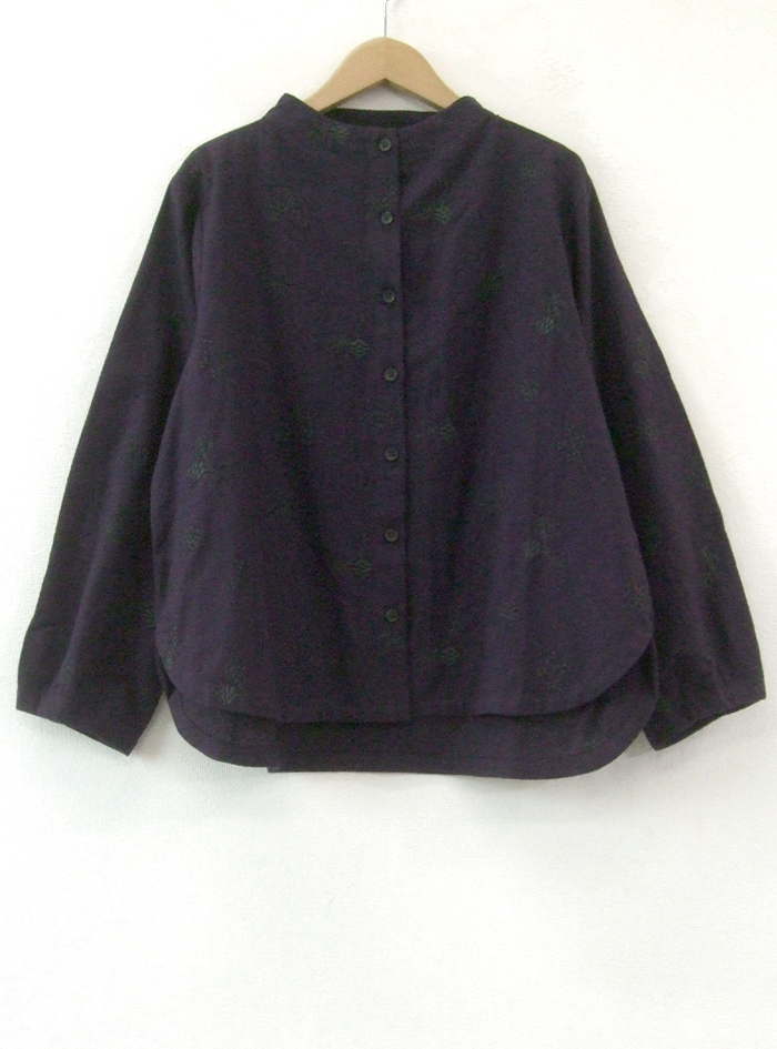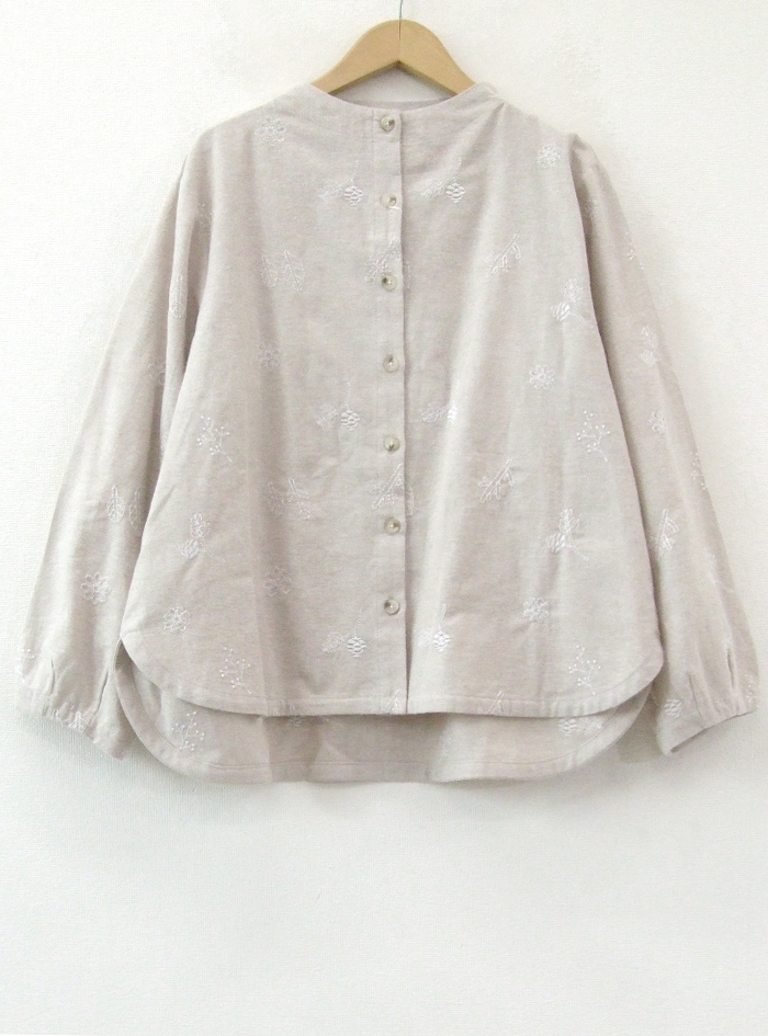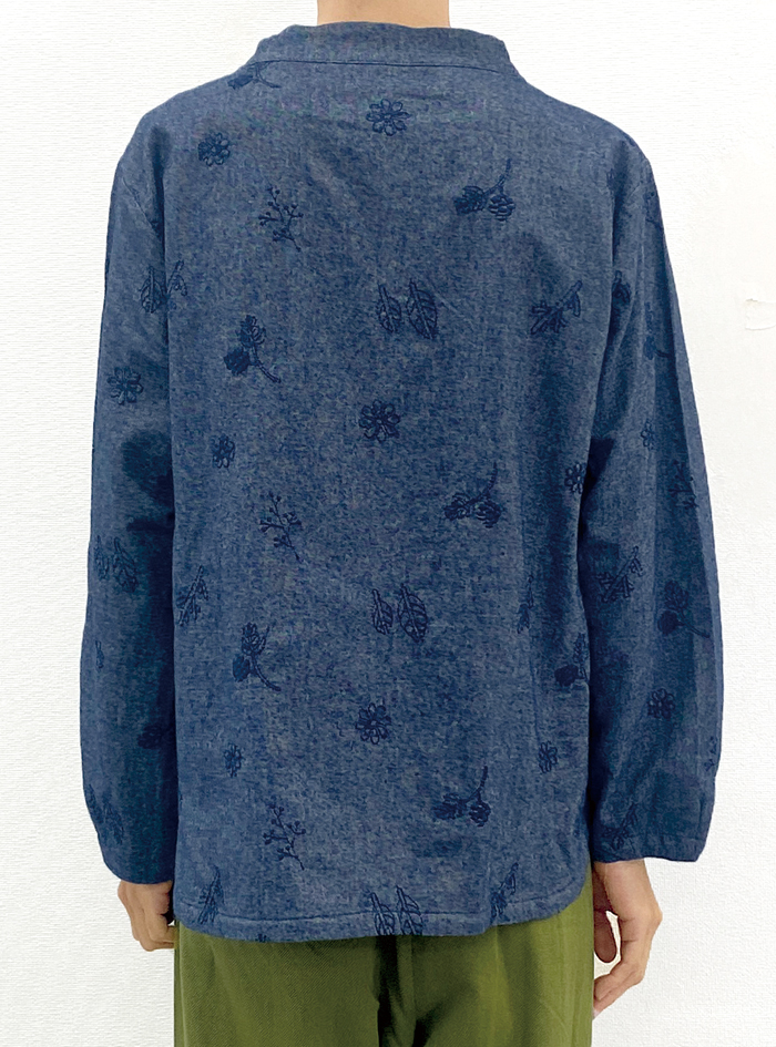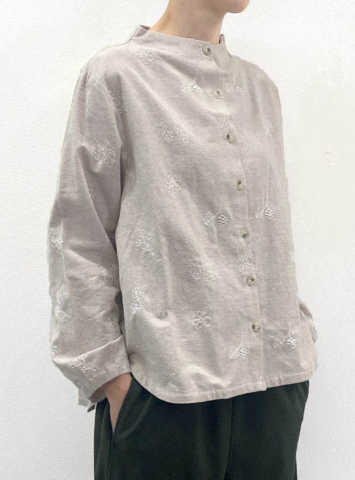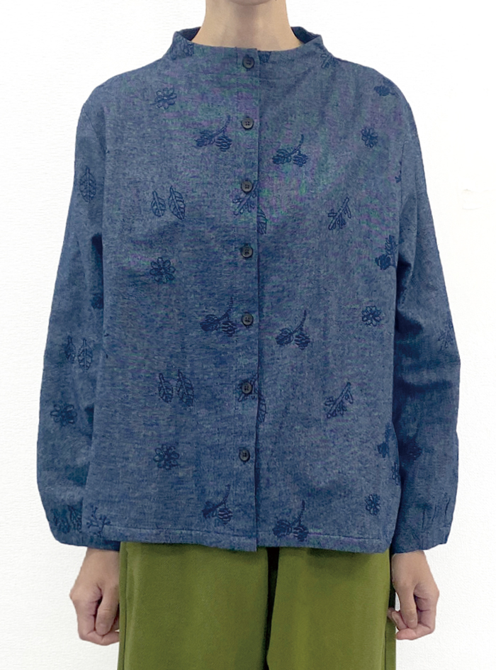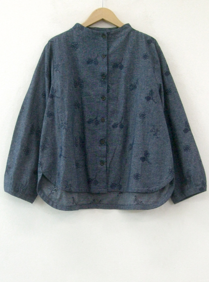 コットンシャンブレー生地に、冬らしい北欧風ボタニカル刺?をプラスしたブラウス。