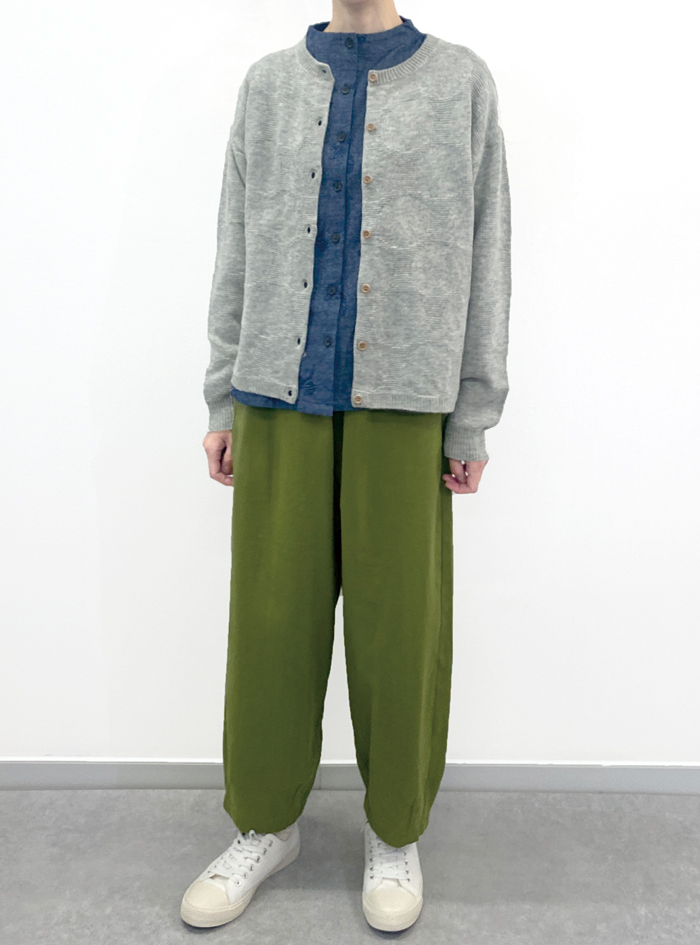 袖口のタックパススリーブに、裾のラウンドカットで優しい印象に仕上げています。