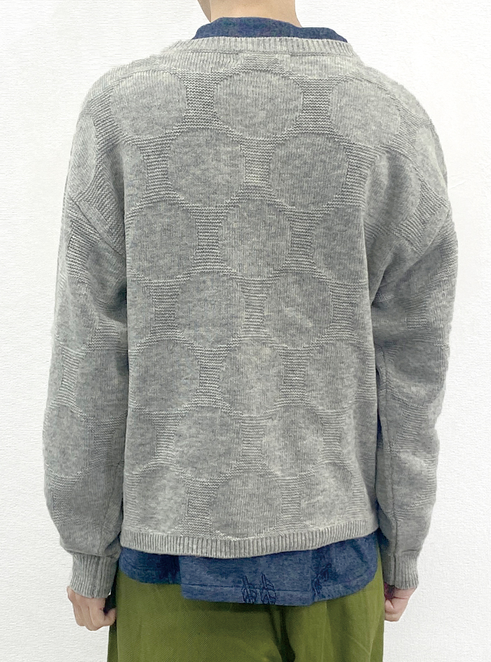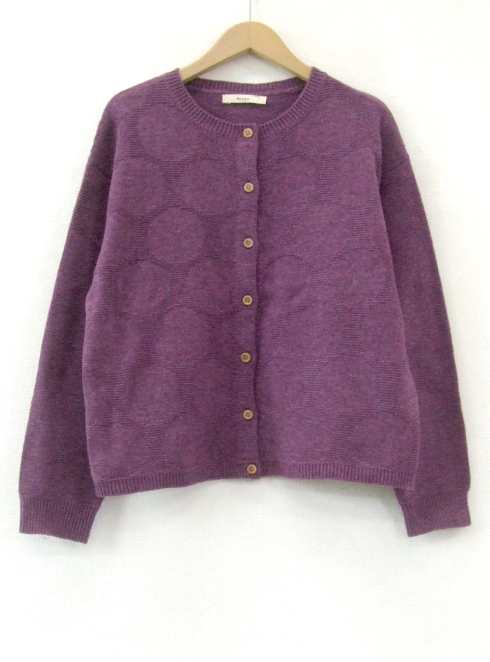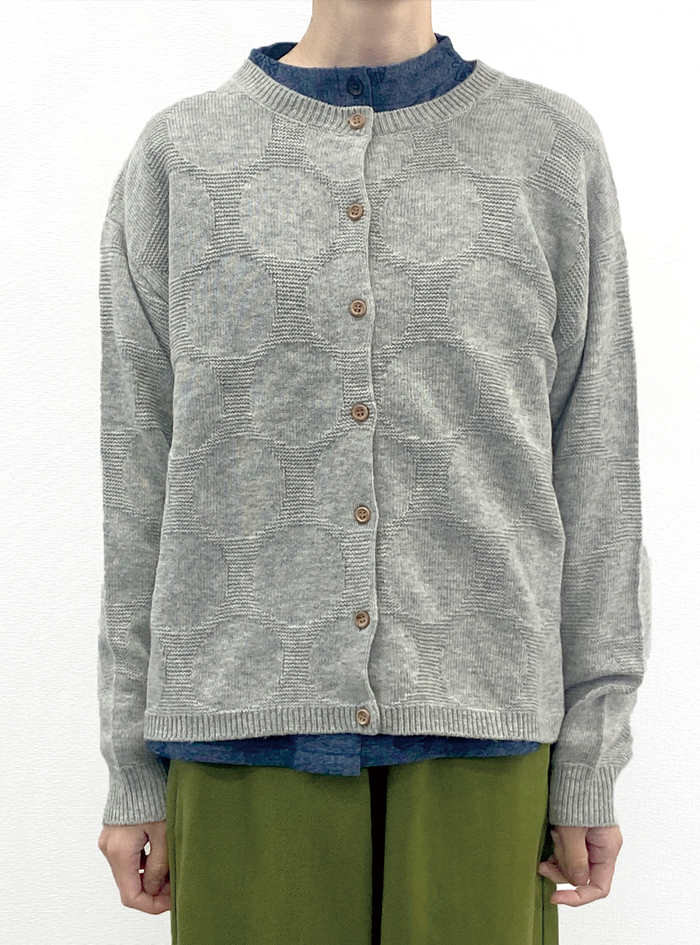軽く暖かで柔らかなラムズウール混のドット柄ジャガードニットカーデ。