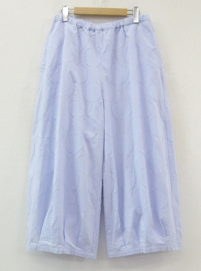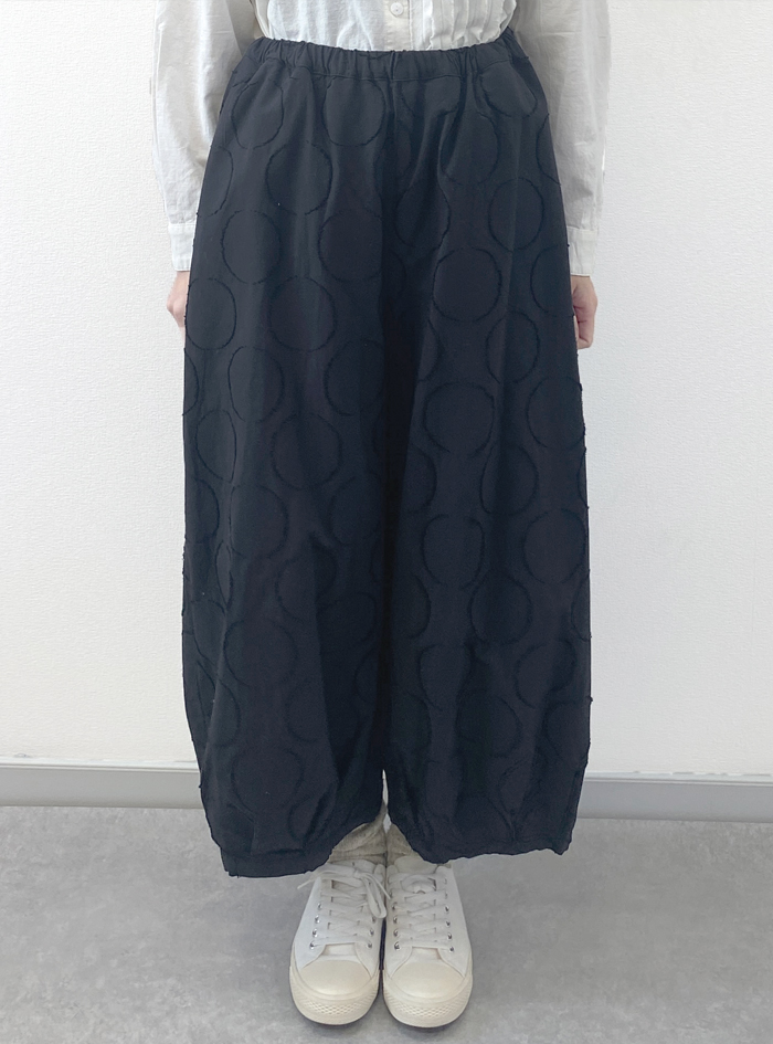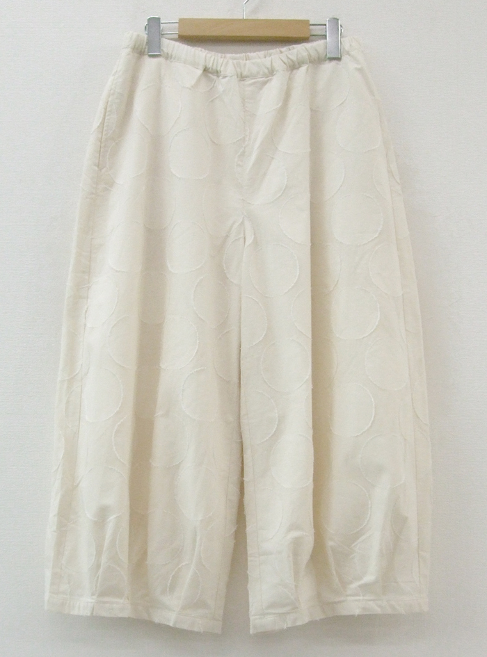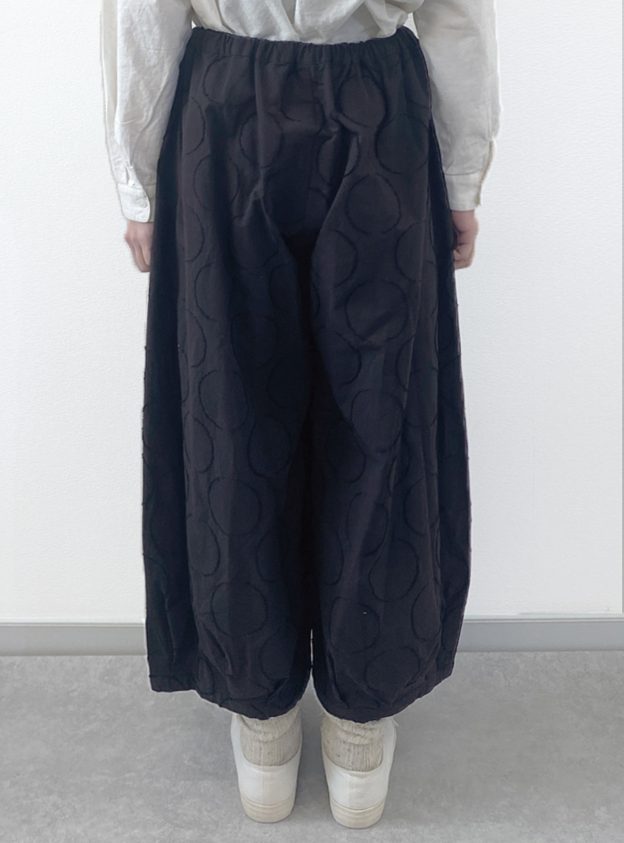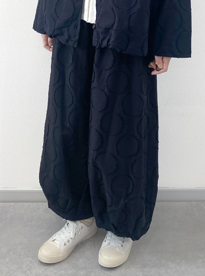ハリ感のあるほどよい生地厚に、かすれ調のドットジャカードで雰囲気よく仕上げたパンツ。