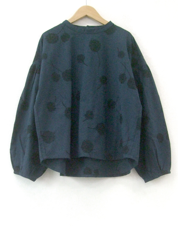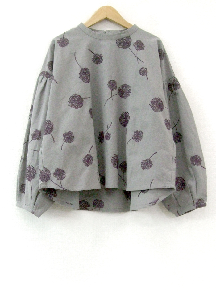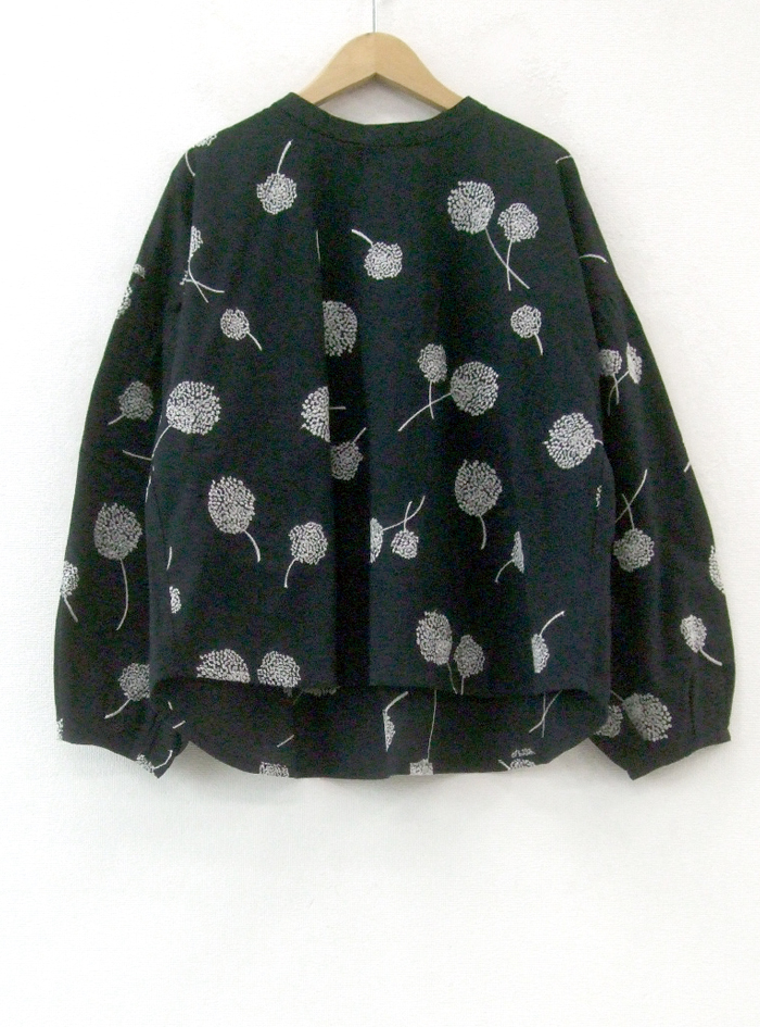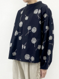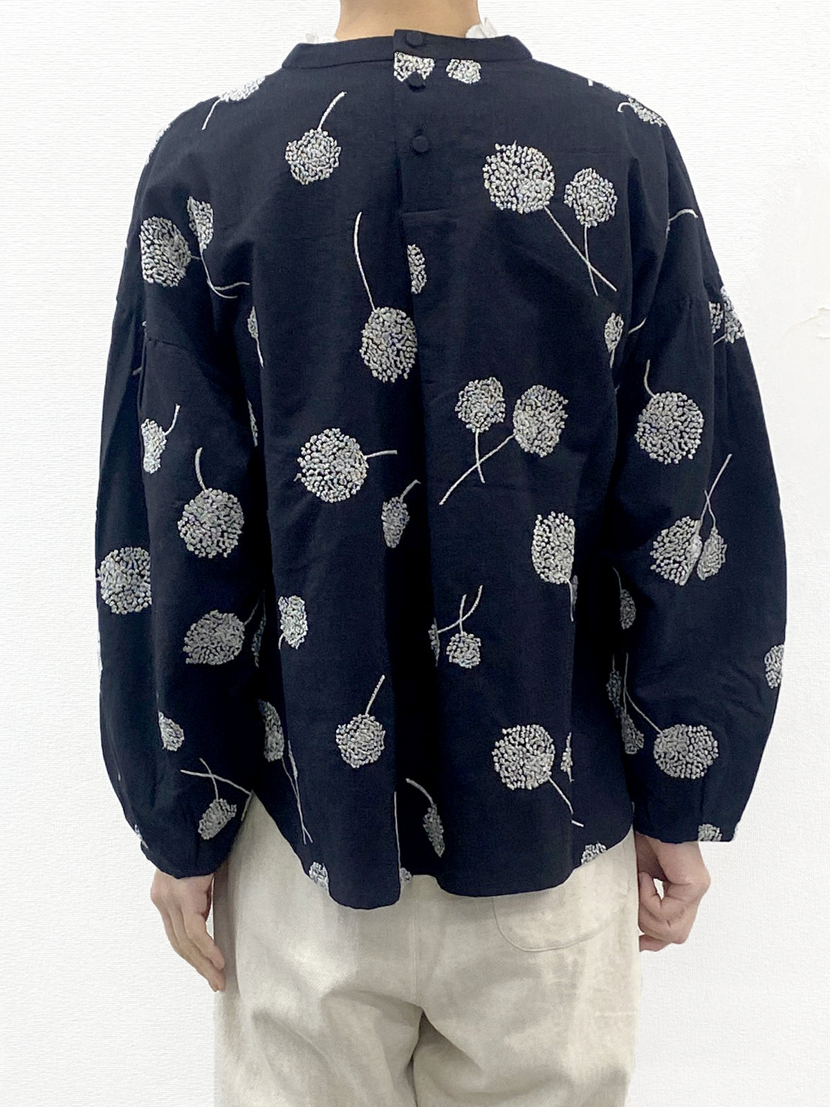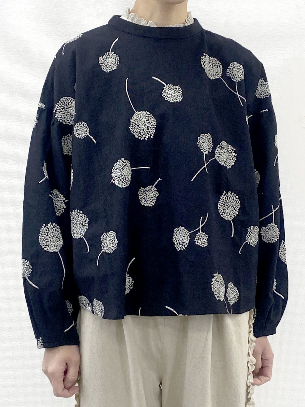 縦糸と横糸のカラーを変えてニュアンスのあるコットンシャンブレーに、まんまるシルエットが可愛いわたげ刺繍をあしらったプルオーバー。