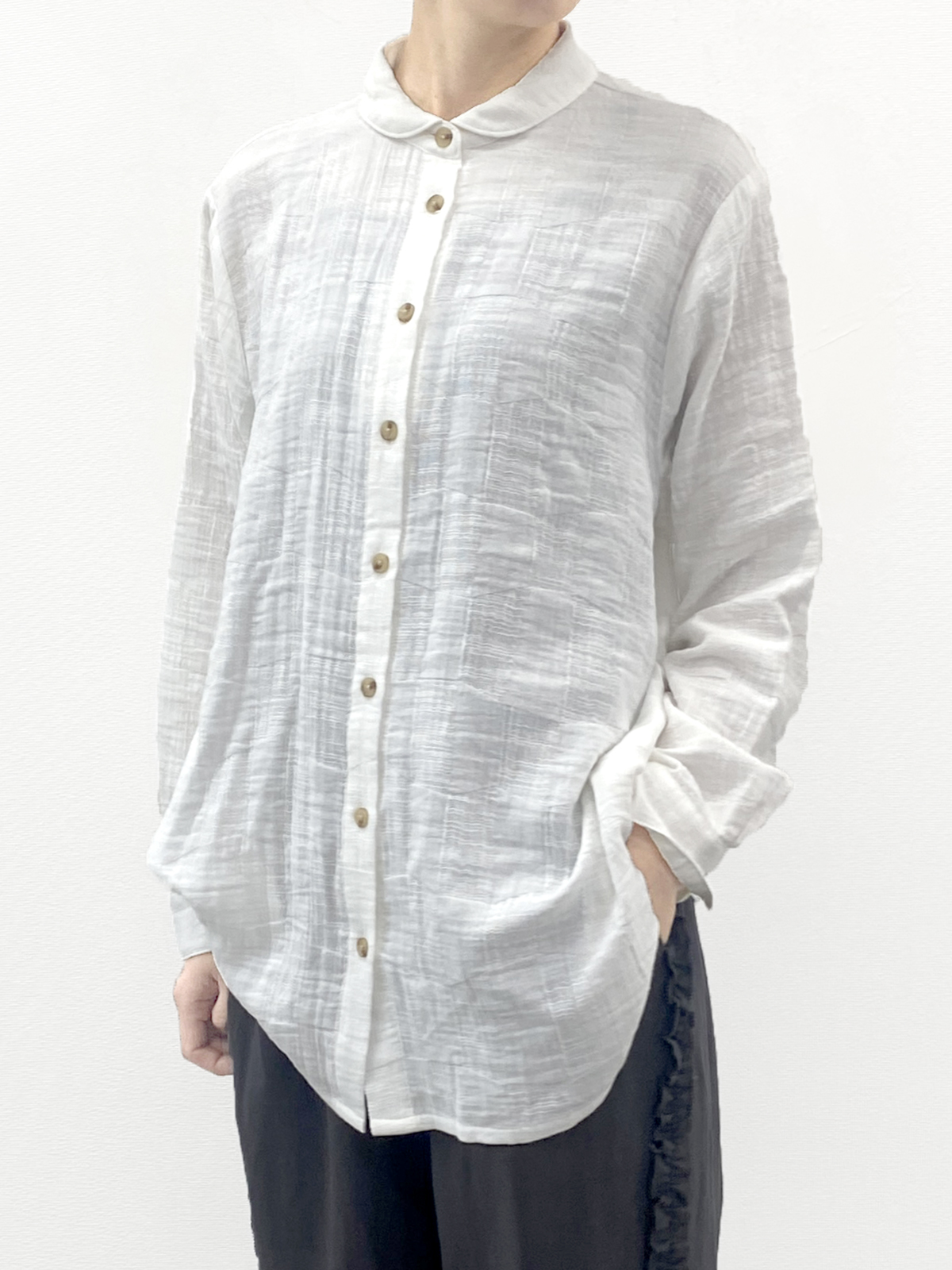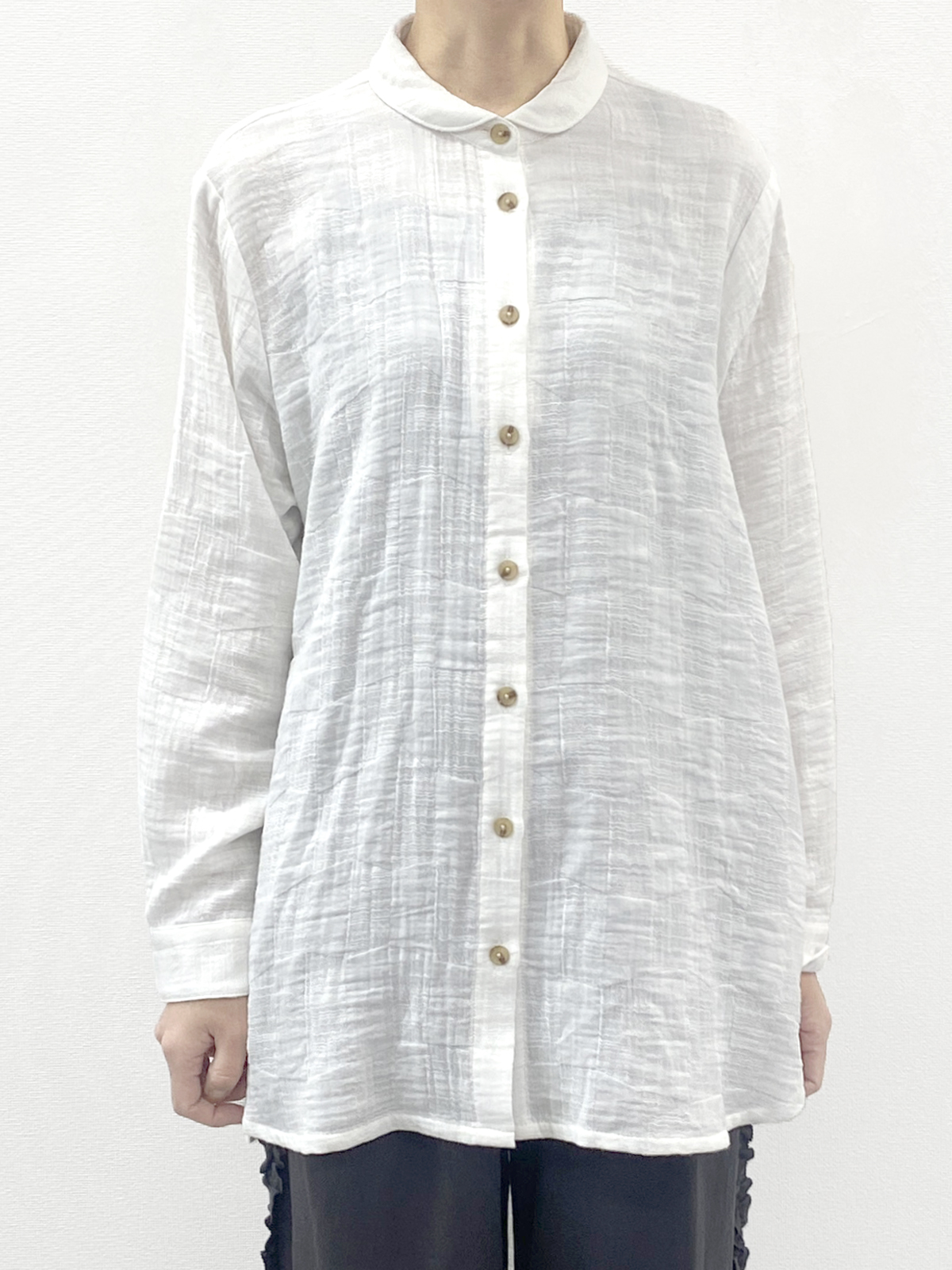 柔らかなコットンガーゼのジャガードチュニックシャツ。